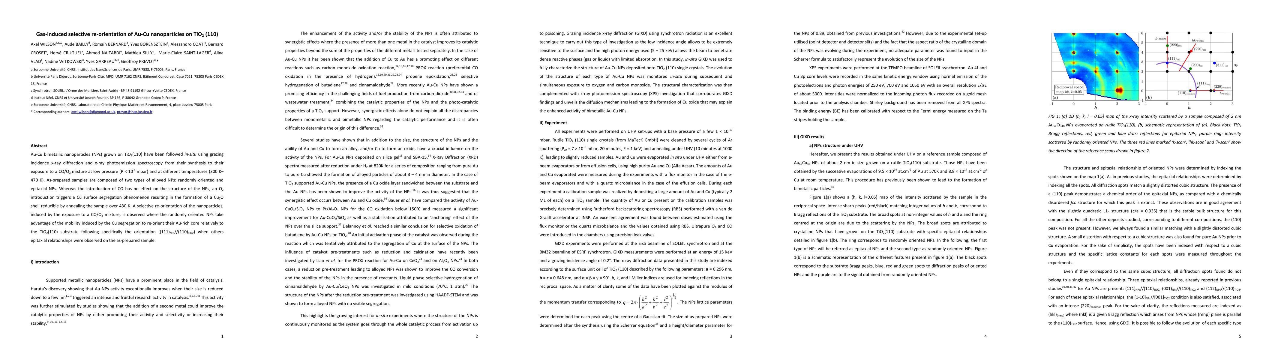 Researchers studied how CO/O2 exposure affects Au-Cu nanoparticles on TiO2, finding that gas-induced selective re-orientation occurs at lower temperatures.
