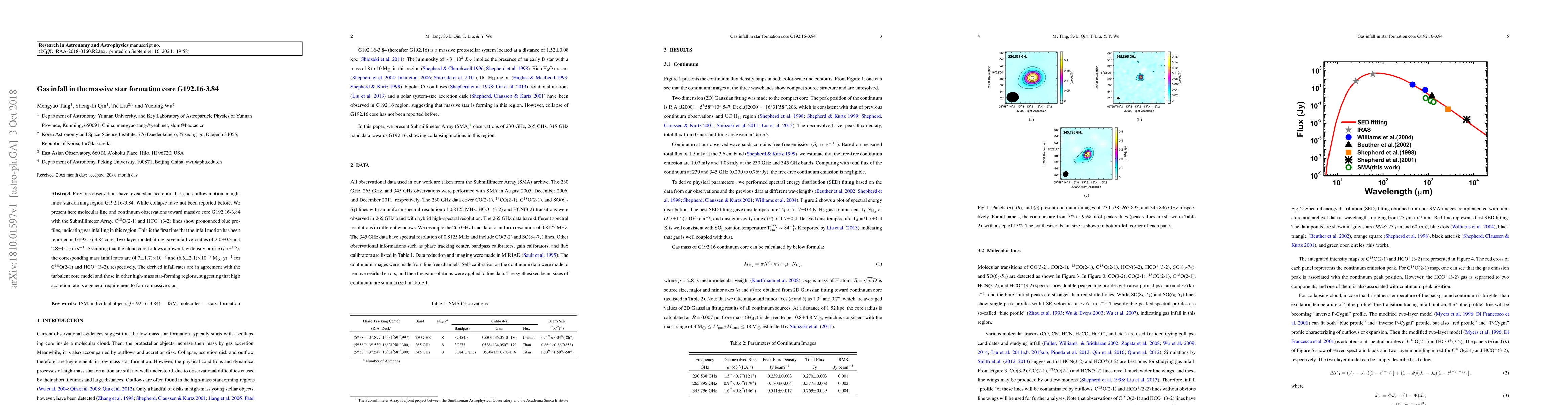 This study reports gas infall in a massive star formation core for the first time, with observed infall velocities of 2-3 km/s and mass infall rates that agree with the turbulent core model.