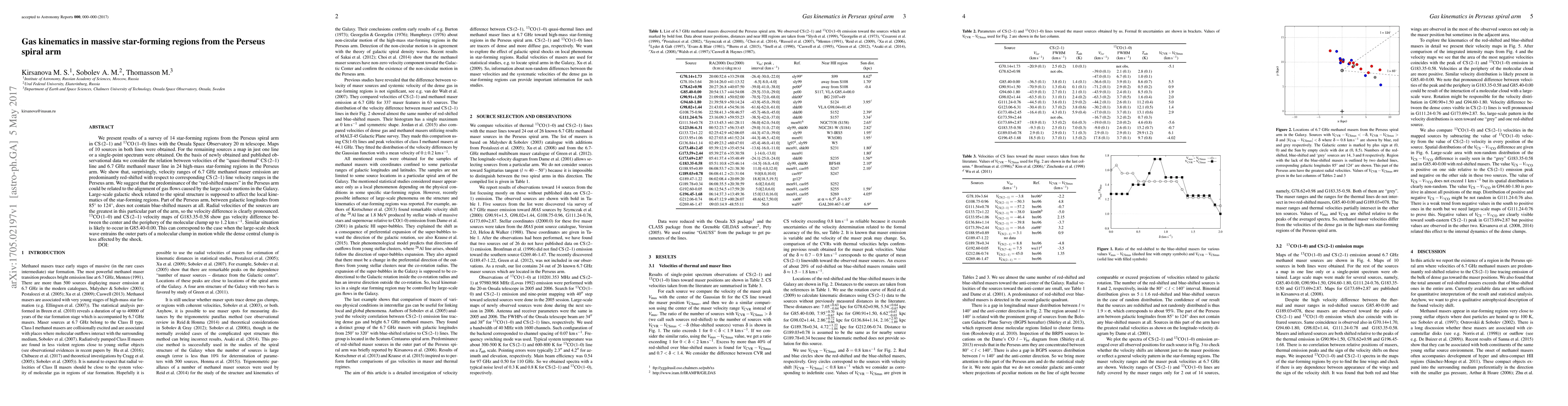 This study investigates gas kinematics in 14 star-forming regions of the Perseus arm using CS(2-1) and 13CO(1-0) lines, revealing predominantly red-shifted methanol maser velocities relative to CS(2-1) lines. The findings suggest that large-scale galactic shocks may influence local star-forming region dynamics, with significant velocity differences observed in certain molecular clumps.