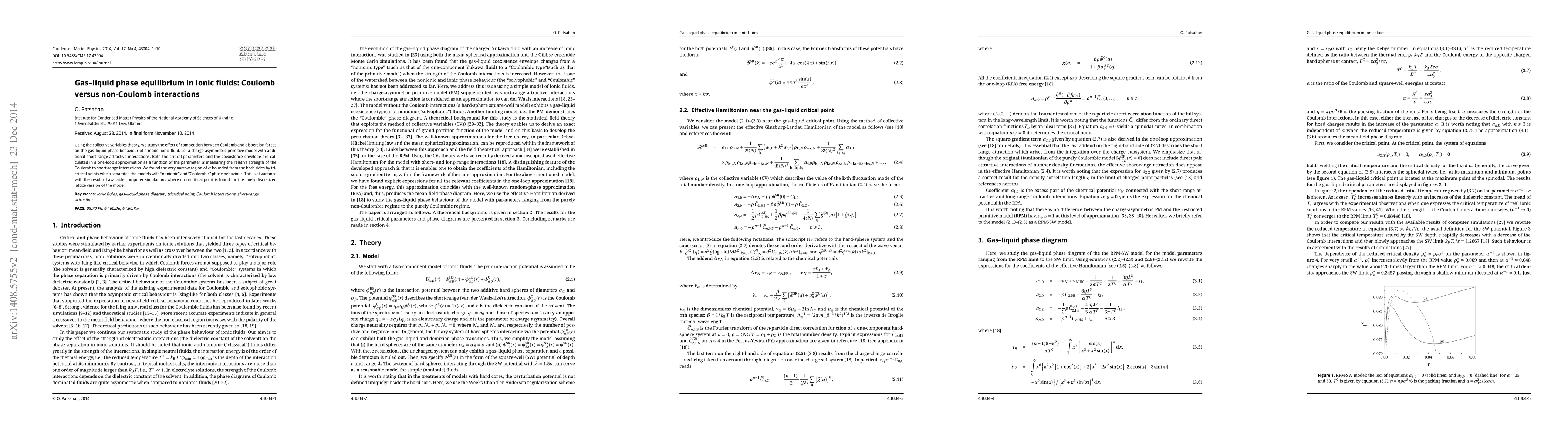 This paper investigates the gas-liquid phase equilibrium in ionic fluids, focusing on the interplay between Coulomb and dispersion forces. It reveals a distinct region where the phase behavior is influenced by the relative strength of these interactions, identified by tricritical points that separate "nonionic" and "Coulombic" phases.