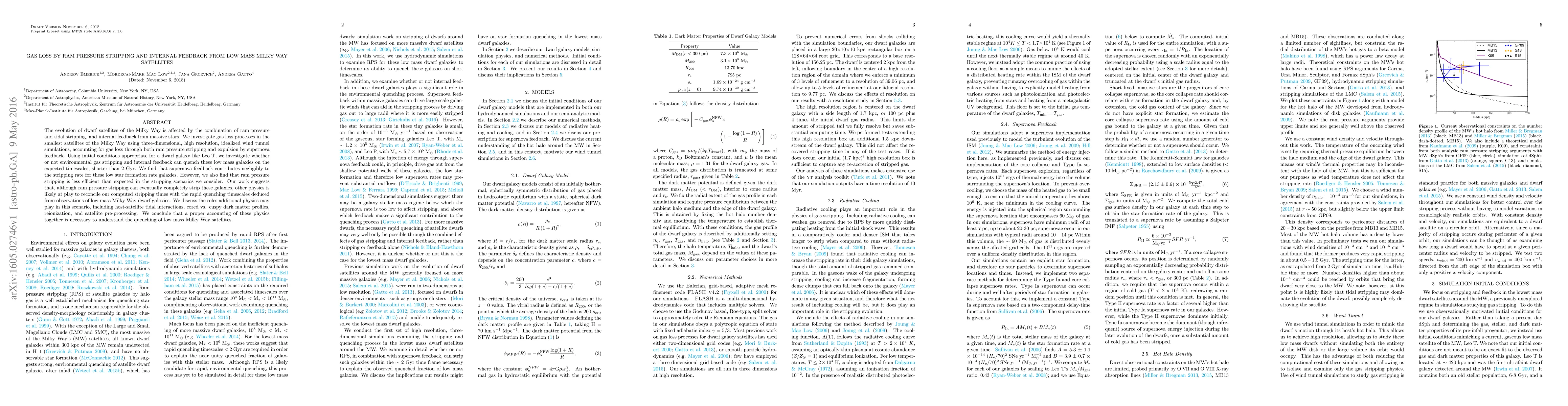 This paper investigates gas loss in low mass Milky Way satellites via ram pressure stripping and supernova feedback, finding that while ram pressure stripping can eventually strip these galaxies, it is not efficient enough to explain the rapid quenching timescales observed. Additional factors like tidal interactions, dark matter profiles, reionization, and pre-processing are likely necessary to reconcile computed stripping times with observations.