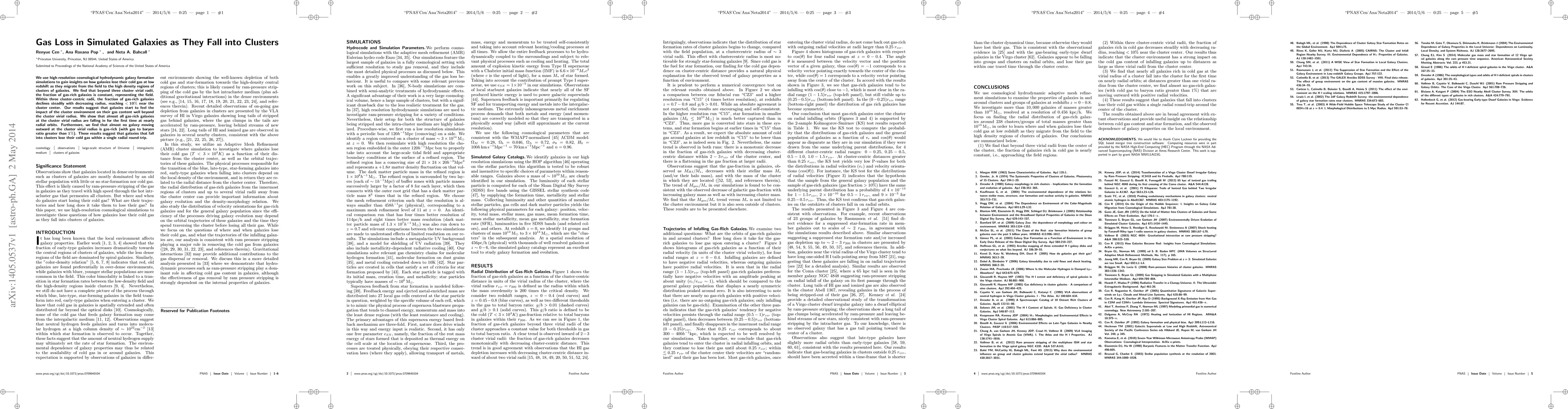 We use high-resolution cosmological hydrodynamic galaxy formation simulations to gain insights on how galaxies lose their cold gas at low redshift as they migrate from the field to the high density regions of clusters of galaxies. We find that beyond three cluster virial radii, the fraction of gas-rich galaxies is constant, representing the field. Within three cluster-centric radii, the fraction of gas-rich galaxies declines steadily with decreasing radius, reaching $\mathbf{<10%}$ near the cluster center. Our results suggest that galaxies start to feel the impact of the cluster environment on their gas content well beyond the cluster virial radius. We show that almost all gas-rich galaxies at the cluster virial radius are falling in for the first time at nearly radial orbits. Furthermore, we find that almost no galaxy moving outward at the cluster virial radius is gas-rich (with gas to baryon ratio greater than $\mathbf{1%}$). These results suggest that galaxies that fall into clusters lose their cold gas within a single radial round-trip.
