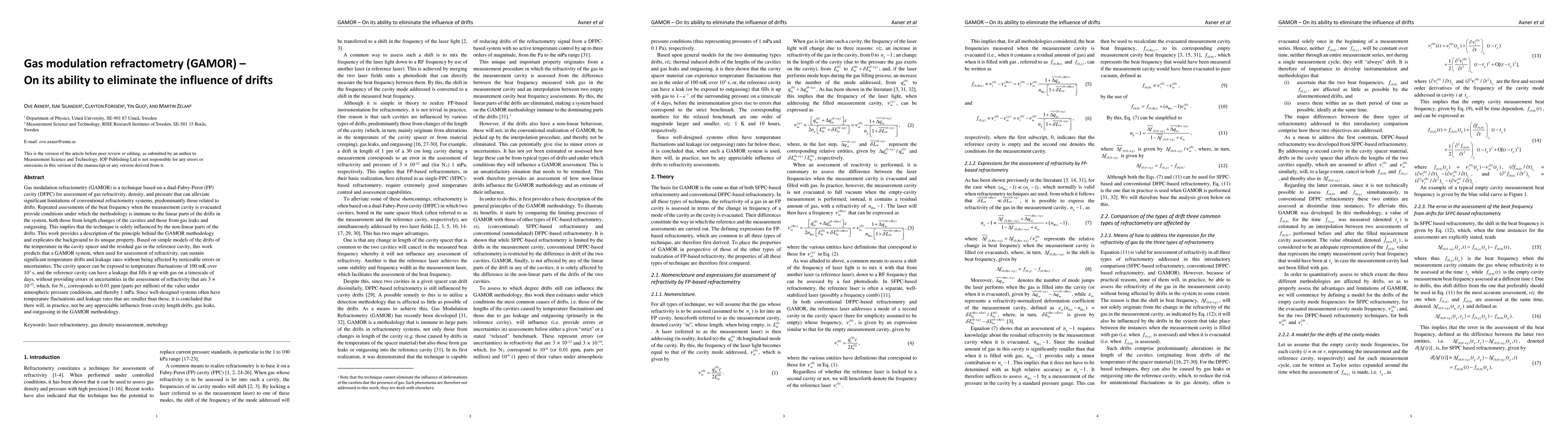 Gas modulation refractometry (GAMOR) is a technique based on a dual-Fabry-Perot (FP) cavity (DFPC) for assessment of gas refractivity, density, and pressure that can alleviate significant limitations of conventional refractometry systems, predominantly those related to drifts. Repeated assessments of the beat frequency when the measurement cavity is evacuated provide conditions under which the methodology is immune to the linear parts of the drifts in the system, both those from length changes of the cavities and those from gas leaks and outgassing. This implies that the technique is solely influenced by the non-linear parts of the drifts. This work provides a description of the principle behind the GAMOR methodology and explicates the background to its unique property. Based on simple models of the drifts of the temperature in the cavity spacer and the residual gas in the reference cavity, this work predicts that a GAMOR system, when used for assessment of refractivity, can sustain significant temperature drifts and leakage rates without being affected by noticeable errors or uncertainties. The cavity spacer can be exposed to temperature fluctuations of 100 mK over 103 s, and the reference cavity can have a leakage that fills it up with gas on a timescale of days, without providing errors or uncertainties in the assessment of refractivity that are 3 x 10^(-12), which, for N2, corresponds to 0.01 ppm (parts per million) of the value under atmospheric pressure conditions, and thereby 1 mPa. Since well-designed systems often have temperature fluctuations and leakage rates that are smaller than these, it is concluded that there will, in practice, not be any appreciable influence from cavity length drifts, gas leaks, and outgassing in the GAMOR methodology.