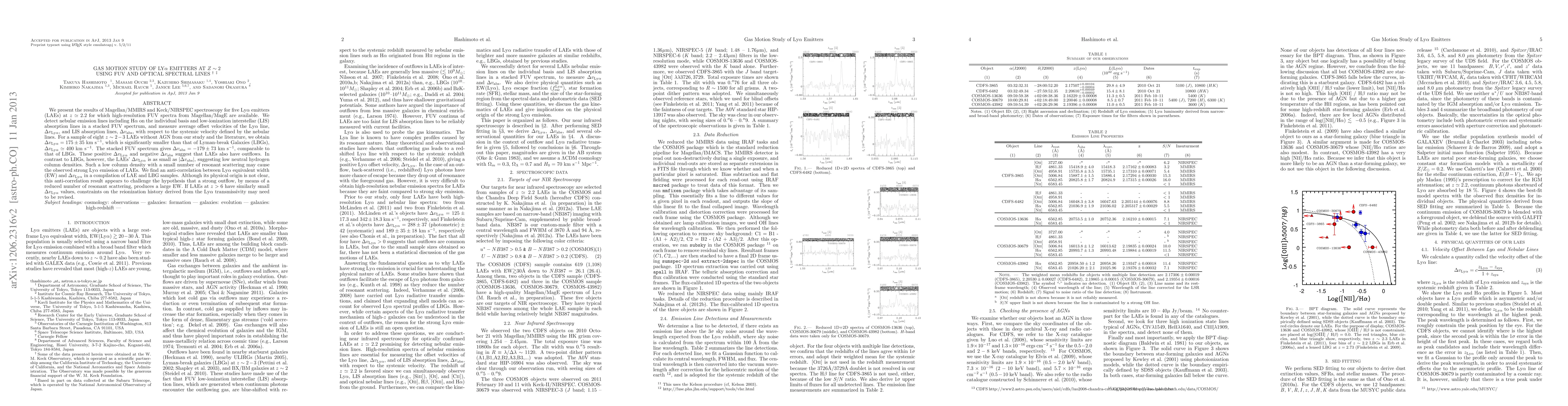 This study uses Magellan and Keck spectroscopy to analyze gas motion in five Lya emitters at z=2.2, finding that their average Lya line offset velocity is significantly smaller than that of Lyman-break Galaxies, suggesting lower neutral hydrogen outflows. An anti-correlation between Lya emission width and outflow velocity challenges the hypothesis that strong outflows enhance Lya emission.
