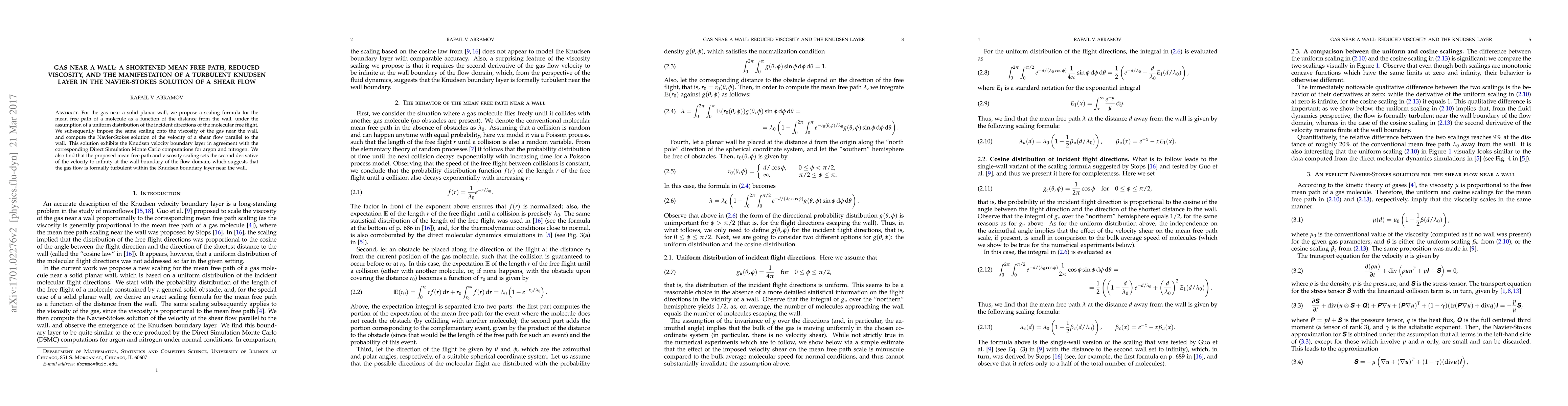 This paper proposes a scaling formula for the mean free path and viscosity of gas near a solid wall, leading to a Navier-Stokes solution that shows a turbulent Knudsen layer. The results align with Direct Simulation Monte Carlo computations, indicating a formally turbulent flow within the Knudsen boundary layer.