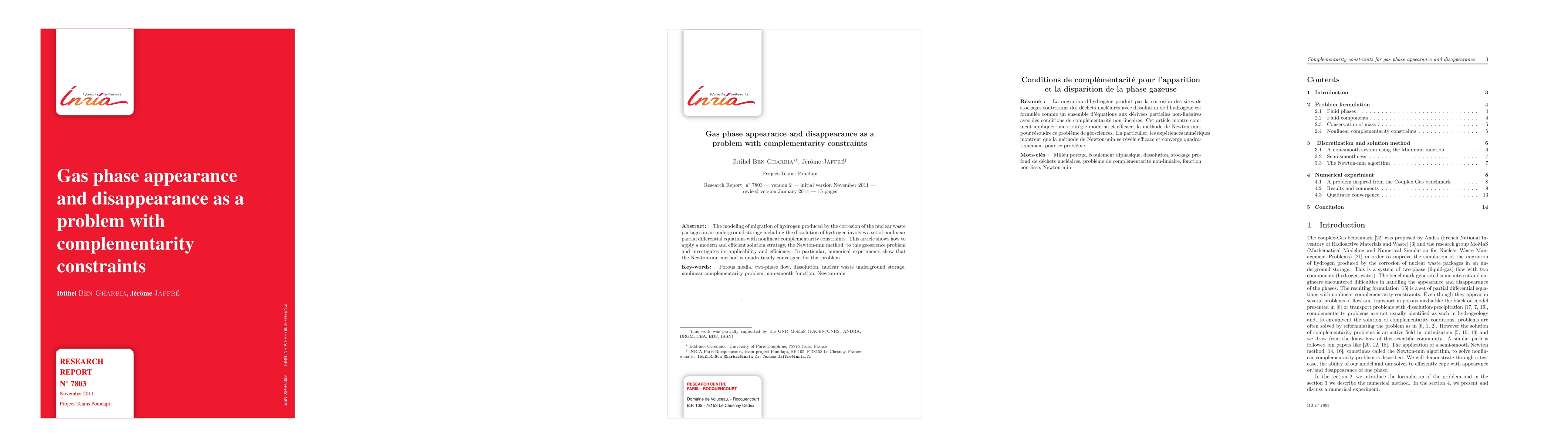 This paper demonstrates the application of the Newton-min method to model hydrogen migration from nuclear waste packages in underground storage, showing quadratic convergence for this geoscience problem with complementarity constraints.