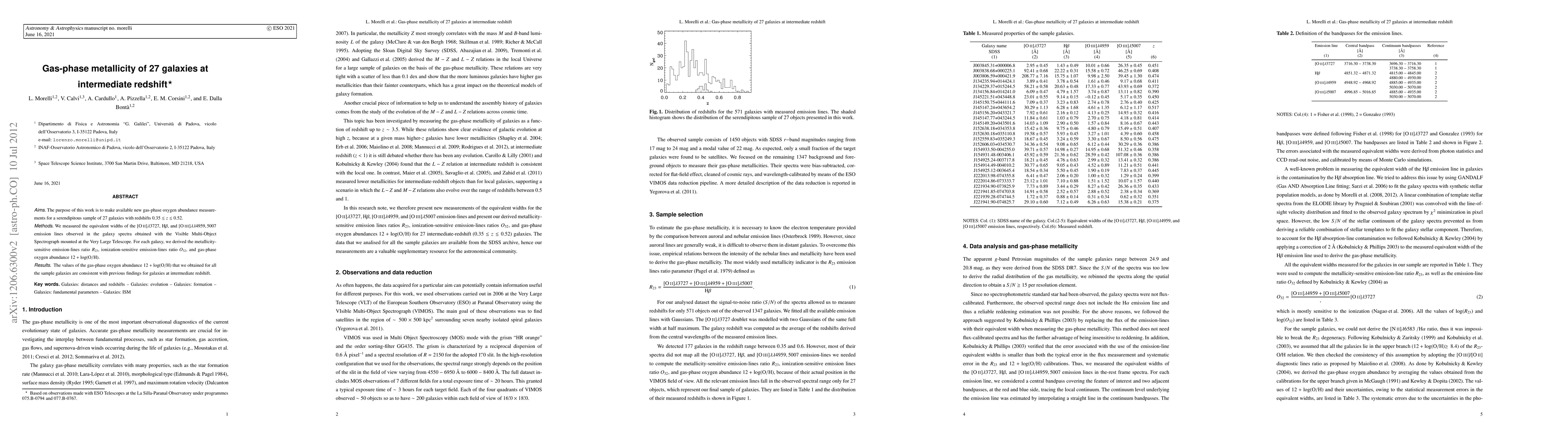 This study measures oxygen abundance in 27 galaxies at intermediate redshift using visible spectroscopy, confirming previous findings with consistent results.