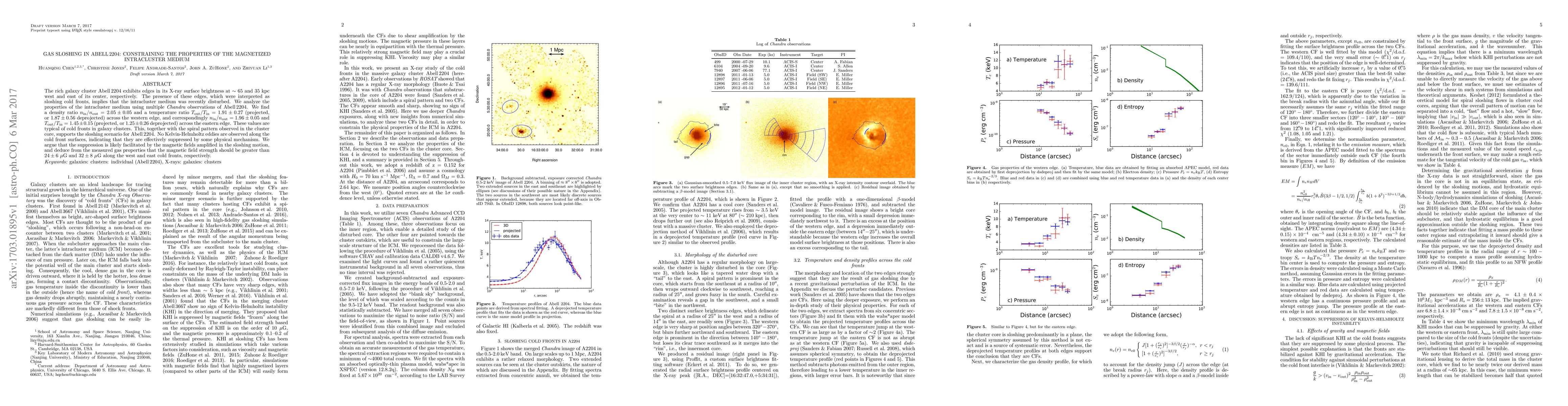 The study of Abell 2204 reveals sloshing cold fronts indicating recent disturbances in the intracluster medium, with density and temperature ratios typical of cold fronts. Magnetic fields likely amplified by sloshing suppress Kelvin-Helmholtz eddies, suggesting magnetic field strengths greater than $24\pm6$ $\mu$G and $32\pm8$ $\mu$G in the western and eastern cold fronts, respectively.