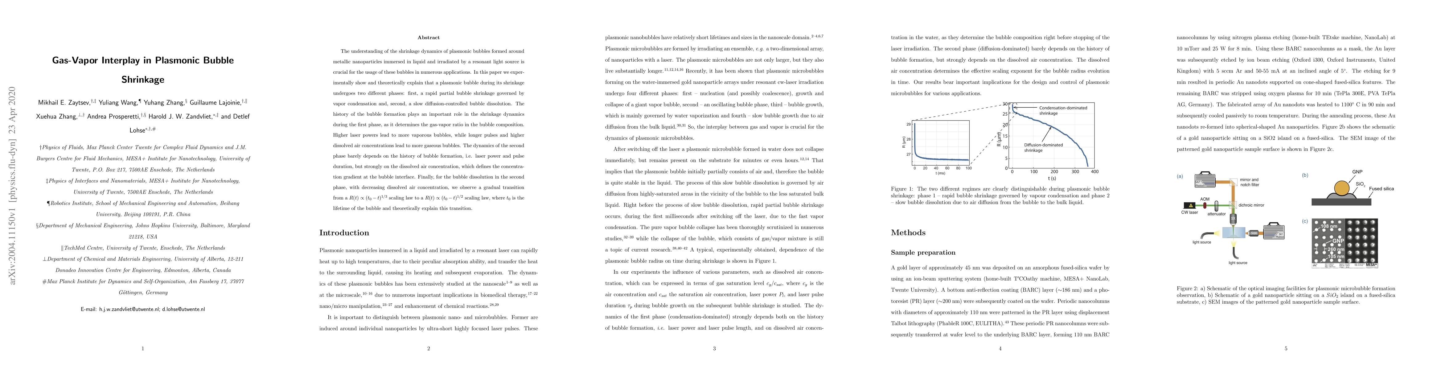 Researchers experimentally demonstrated two phases in plasmonic bubble shrinkage: rapid vapor condensation followed by slow diffusion-controlled dissolution, with dissolved air concentration influencing the second phase.