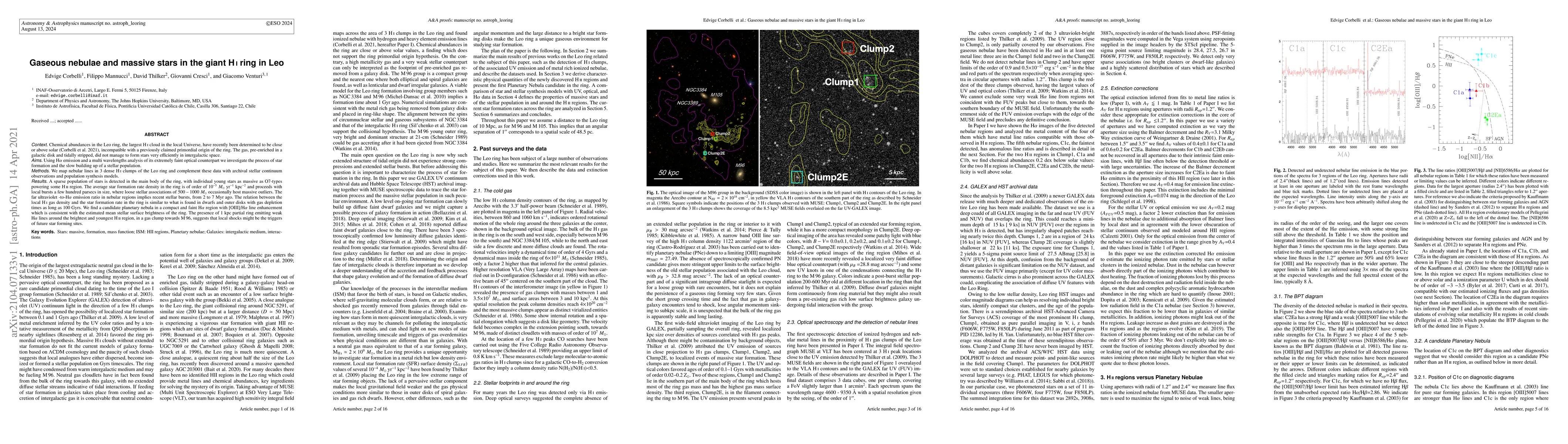 This paper investigates the star formation and chemical abundances in the Leo ring, revealing that the gas, enriched from a galactic disk, forms stars inefficiently in intergalactic space. It finds a sparse population of massive stars, with an average star formation rate density of 10^{-5} Msun/yr/kpc^2, and suggests local shocks may trigger new star-forming events.