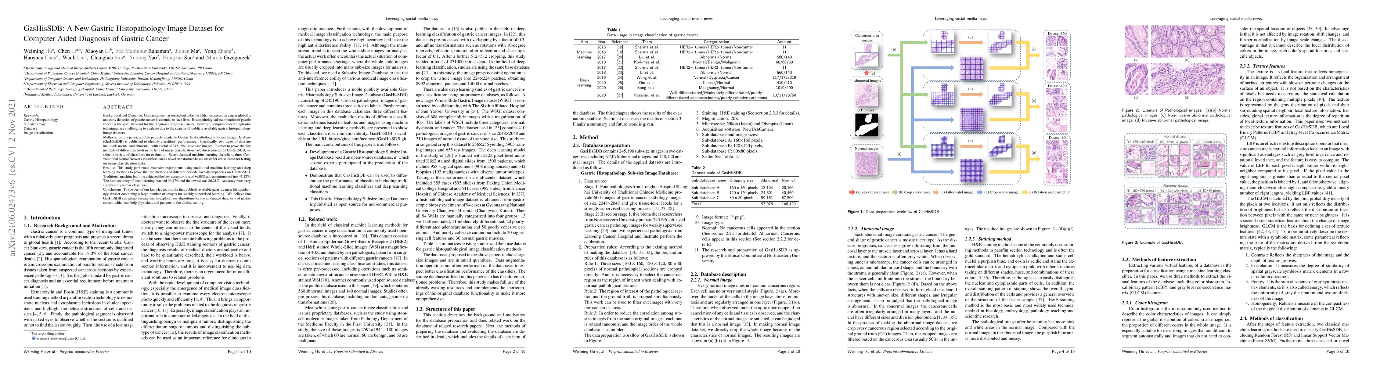 This paper introduces GasHisSDB, a new publicly available gastric histopathology image dataset aimed at aiding the diagnosis of gastric cancer. The study evaluates various classifiers, showing significant accuracy variations between traditional machine learning and deep learning methods, with the latter achieving higher overall accuracy.