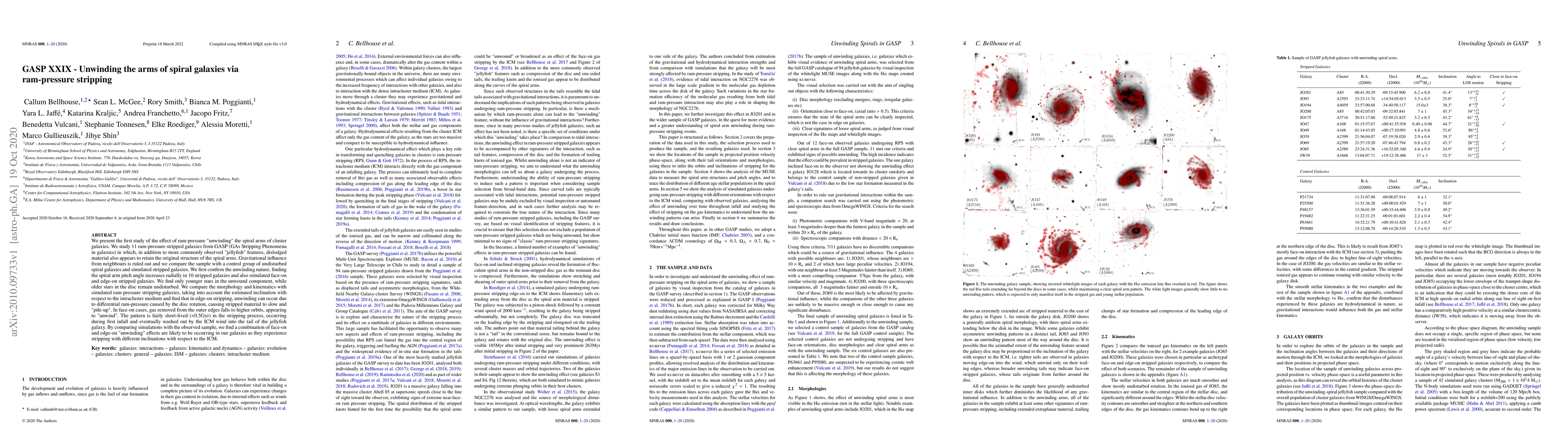 We present the first study of the effect of ram-pressure "unwinding" the spiral arms of cluster galaxies. We study 11 ram-pressure stripped galaxies from GASP (GAs Stripping Phenomena in galaxies) in which, in addition to more commonly observed "jellyfish" features, dislodged material also appears to retain the original structure of the spiral arms. Gravitational influence from neighbours is ruled out and we compare the sample with a control group of undisturbed spiral galaxies and simulated stripped galaxies. We first confirm the unwinding nature, finding the spiral arm pitch angle increases radially in 10 stripped galaxies and also simulated face-on and edge-on stripped galaxies. We find only younger stars in the unwound component, while older stars in the disc remain undisturbed. We compare the morphology and kinematics with simulated ram-pressure stripping galaxies, taking into account the estimated inclination with respect to the intracluster medium and find that in edge-on stripping, unwinding can occur due to differential ram-pressure caused by the disc rotation, causing stripped material to slow and "pile-up". In face-on cases, gas removed from the outer edges falls to higher orbits, appearing to "unwind". The pattern is fairly short-lived (<0.5Gyr) in the stripping process, occurring during first infall and eventually washed out by the ICM wind into the tail of the jellyfish galaxy. By comparing simulations with the observed sample, we find a combination of face-on and edge-on "unwinding" effects are likely to be occurring in our galaxies as they experience stripping with different inclinations with respect to the ICM.