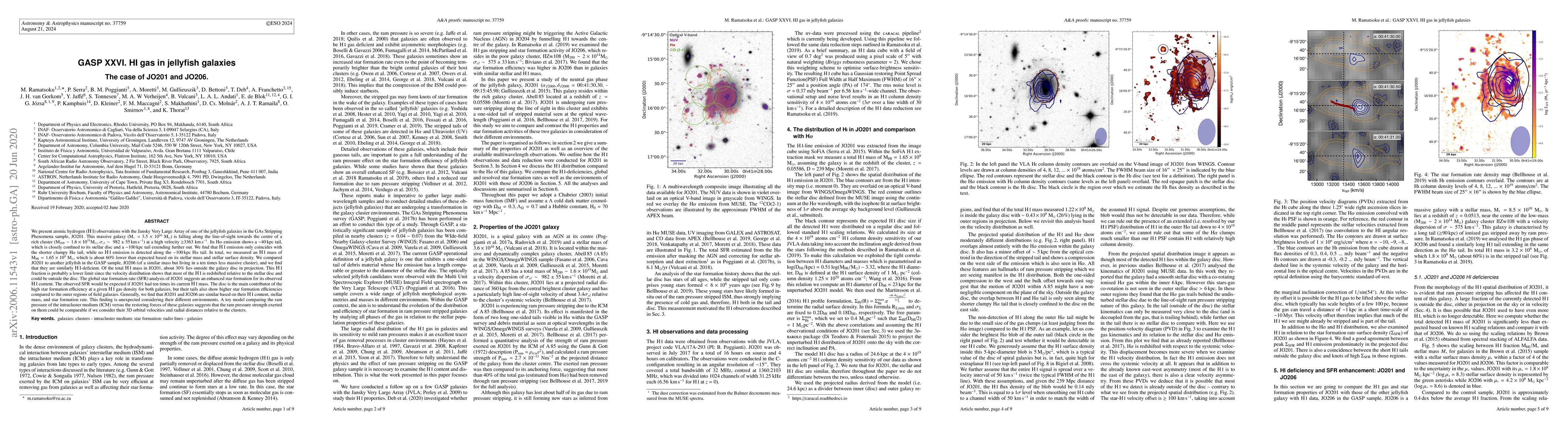 This paper investigates HI gas in jellyfish galaxies JO201 and JO206, finding both galaxies to be significantly HI-deficient despite residing in vastly different cluster environments. JO201 shows a substantial HI mass discrepancy, with only 40% of expected HI based on its stellar mass, and a notable fraction of HI located outside its disc.