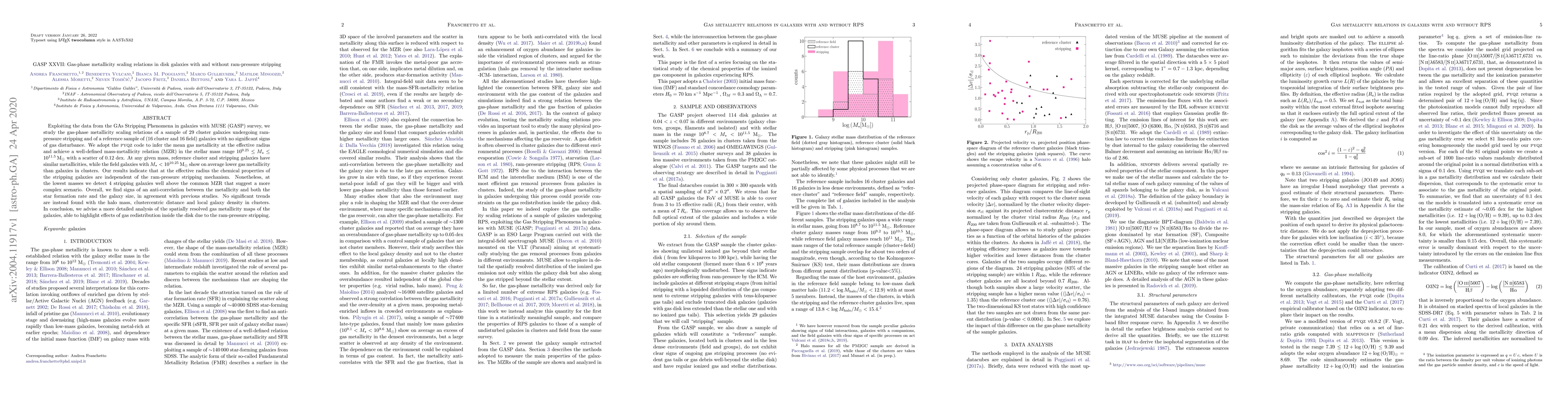 This paper investigates the gas-phase metallicity scaling relations in disk galaxies, comparing those undergoing ram-pressure stripping to undisturbed galaxies. It finds that stripping does not significantly affect the overall metallicity at the effective radius, though lower-mass stripping galaxies show some deviation. The study highlights the need for spatially resolved gas metallicity analysis to understand internal gas redistribution effects.