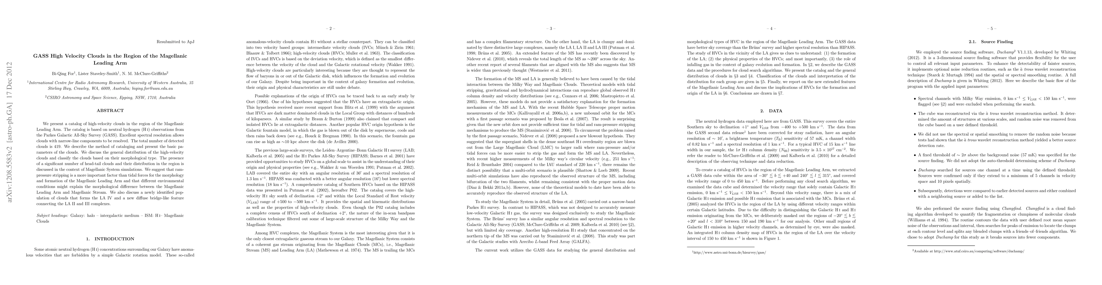 This paper catalogs 419 high-velocity clouds in the Magellanic Leading Arm using GASS \HI observations, classifying them based on morphology and suggesting ram-pressure stripping as a key factor in their formation, alongside a new diffuse bridge-like feature.