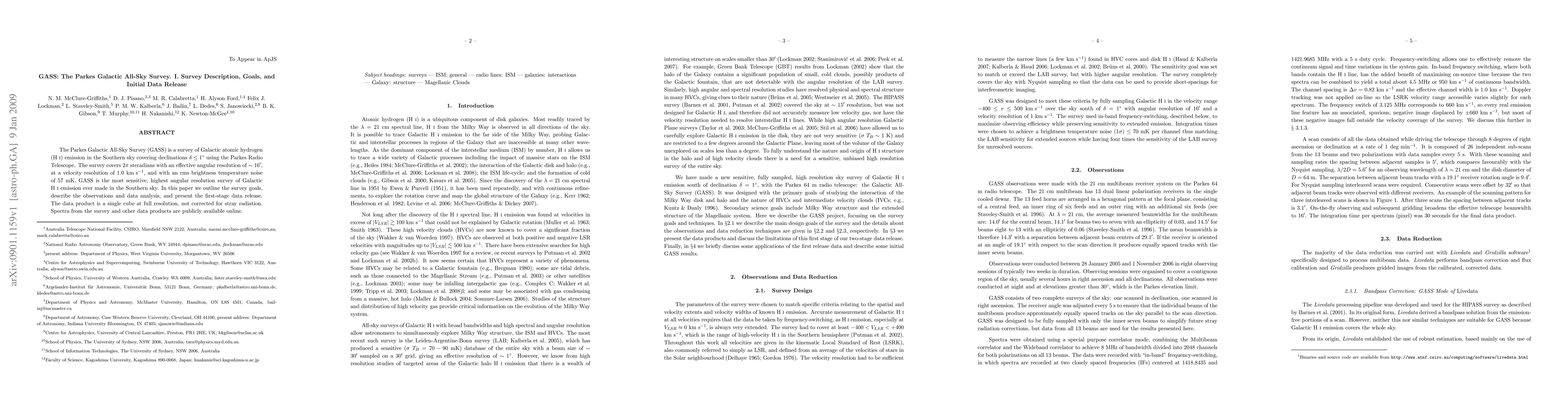The Parkes Galactic All-Sky Survey (GASS) is a high-resolution, sensitive survey of Southern sky atomic hydrogen (HI) using the Parkes Radio Telescope. The initial data release includes a single HI cube at 16' angular resolution, with spectra and other data publicly accessible online.