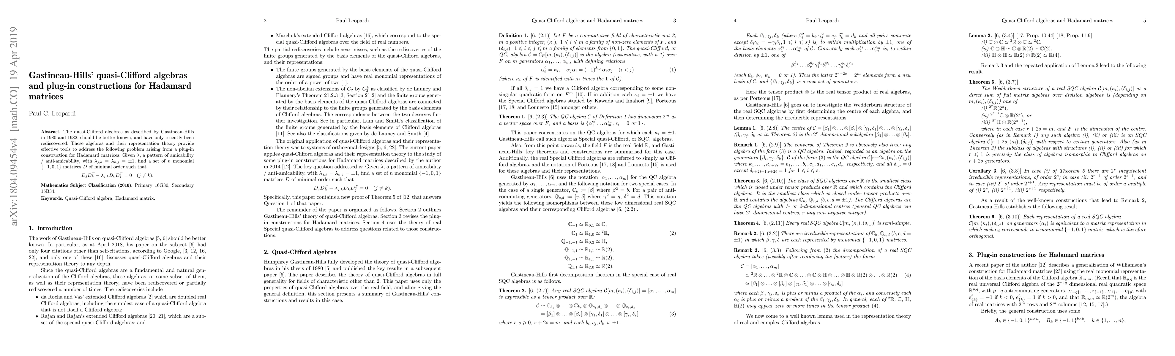 The quasi-Clifford algebras, and their Wedderburn structure and representation theory, as described by Gastineau-Hills in 1980 and 1982, should be better known, and have only recently been rediscovered. These algebras and their representation theory provide effective tools to address certain questions relating to plug-in constructions for Hadamard matrices. The key question addressed is: Given $\lambda$, a pattern of amicability / anti-amicability, with $\lambda_{j,k}=\lambda_{k,j}=\pm 1$, find a set of $n$ monomial $\{-1,0,1\}$ matrices $\{D_j\}$ of minimal order such that $$ D_j D_k^T - \lambda_{j,k} D_k D_j^T = 0 \quad (j \neq k). $$