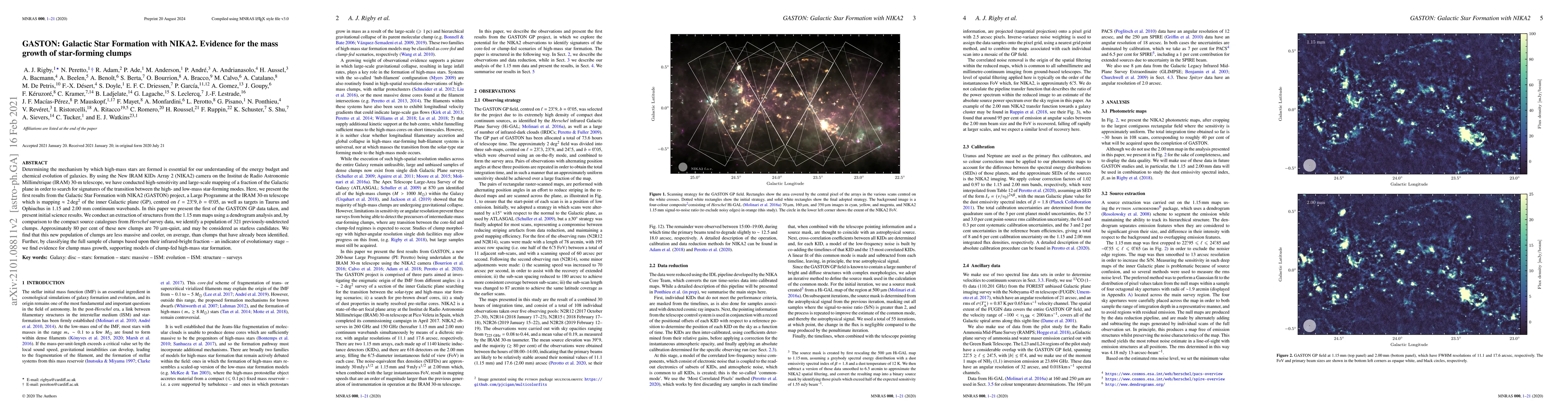Determining the mechanism by which high-mass stars are formed is essential for our understanding of the energy budget and chemical evolution of galaxies. By using the New IRAM KIDs Array 2 (NIKA2) camera on the Institut de Radio Astronomie Millim\'etrique (IRAM) 30-m telescope, we have conducted high-sensitivity and large-scale mapping of a fraction of the Galactic plane in order to search for signatures of the transition between the high- and low-mass star-forming modes. Here, we present the first results from the Galactic Star Formation with NIKA2 (GASTON) project, a Large Programme at the IRAM 30-m telescope which is mapping $\approx$2 deg$^2$ of the inner Galactic plane (GP), centred on $\ell$=23.9$^\circ$, $b$=0.05$^\circ$, as well as targets in Taurus and Ophiuchus in 1.15 and 2.00 mm continuum wavebands. In this paper we present the first of the GASTON GP data taken, and present initial science results. We conduct an extraction of structures from the 1.15 mm maps using a dendrogram analysis and, by comparison to the compact source catalogues from Herschel survey data, we identify a population of 321 previously-undetected clumps. Approximately 80 per cent of these new clumps are 70 $\mu$m-quiet, and may be considered as starless candidates. We find that this new population of clumps are less massive and cooler, on average, than clumps that have already been identified. Further, by classifying the full sample of clumps based upon their infrared-bright fraction - an indicator of evolutionary stage - we find evidence for clump mass growth, supporting models of clump-fed high-mass star formation.