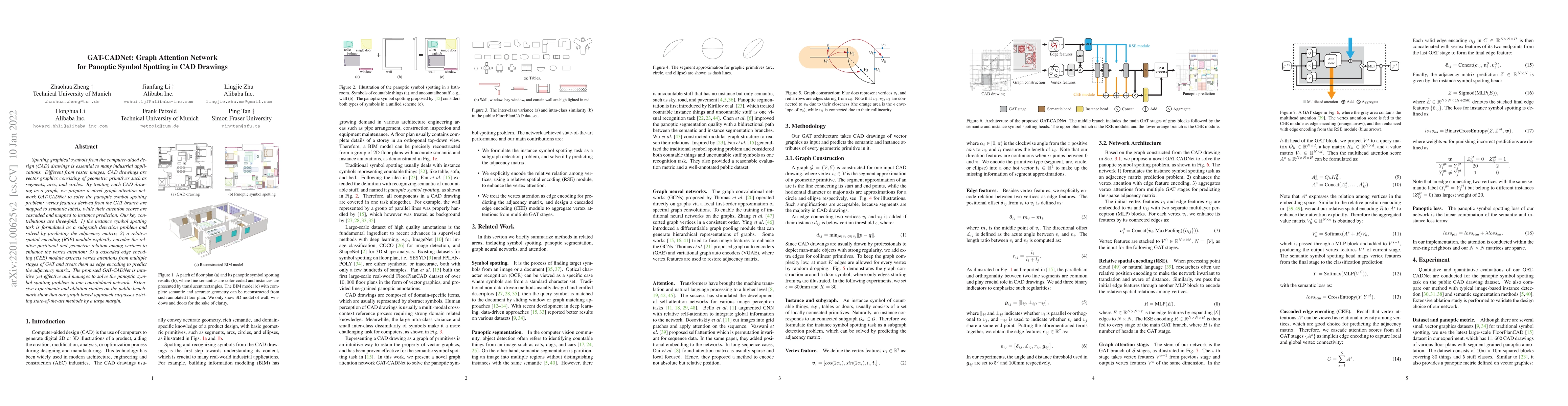GAT-CADNet utilizes a graph attention network to solve the panoptic symbol spotting problem in CAD drawings, treating them as graphs and employing modules for relative spatial encoding and cascaded edge encoding to enhance performance, outperforming existing methods in spotting symbols.