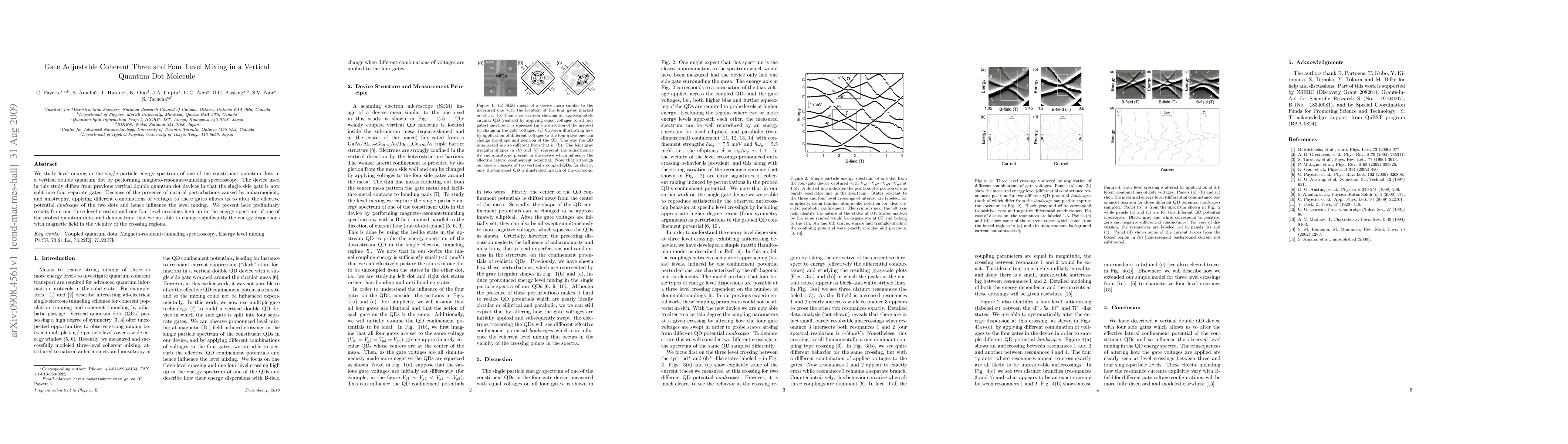 This research investigates level mixing in a vertical quantum dot molecule using magneto-resonant-tunneling spectroscopy, with a focus on altering the effective potential landscape through four separate gates. Preliminary results show significant changes in energy dispersions near three and four level crossings with magnetic field variations.