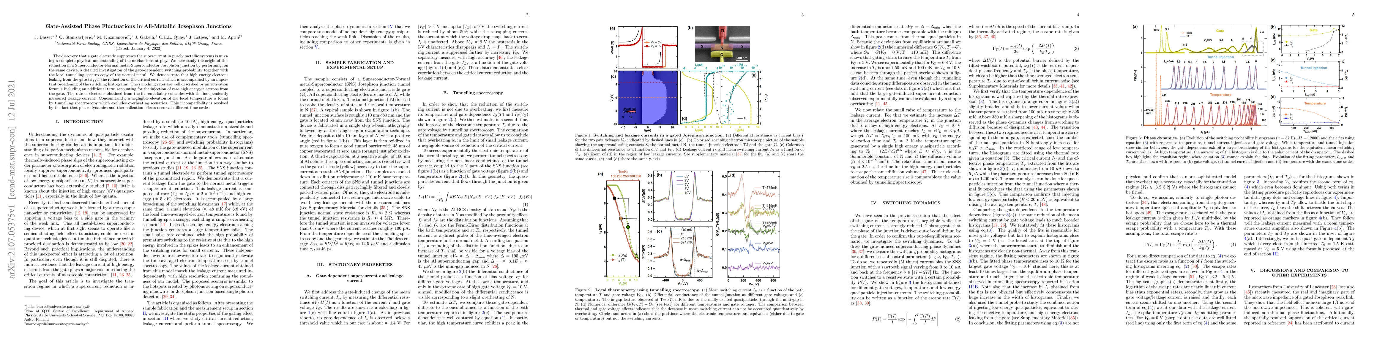 The discovery that a gate electrode suppresses the supercurrent in purely metallic systems is missing a complete physical understanding of the mechanisms at play. We here study the origin of this reduction in a Superconductor-Normal metal-Superconductor Josephson junction by performing, on the same device, a detailed investigation of the gate-dependent switching probability together with the local tunnelling spectroscopy of the normal metal. We demonstrate that high energy electrons leaking from the gate trigger the reduction of the critical current which is accompanied by an important broadening of the switching histograms. The switching rates are well described by an activation formula including an additional term accounting for the injection of rare high energy electrons from the gate. The rate of electrons obtained from the fit remarkably coincides with the independently measured leakage current. Concomitantly, a negligible elevation of the local temperature is found by tunnelling spectroscopy which excludes overheating scenarios.