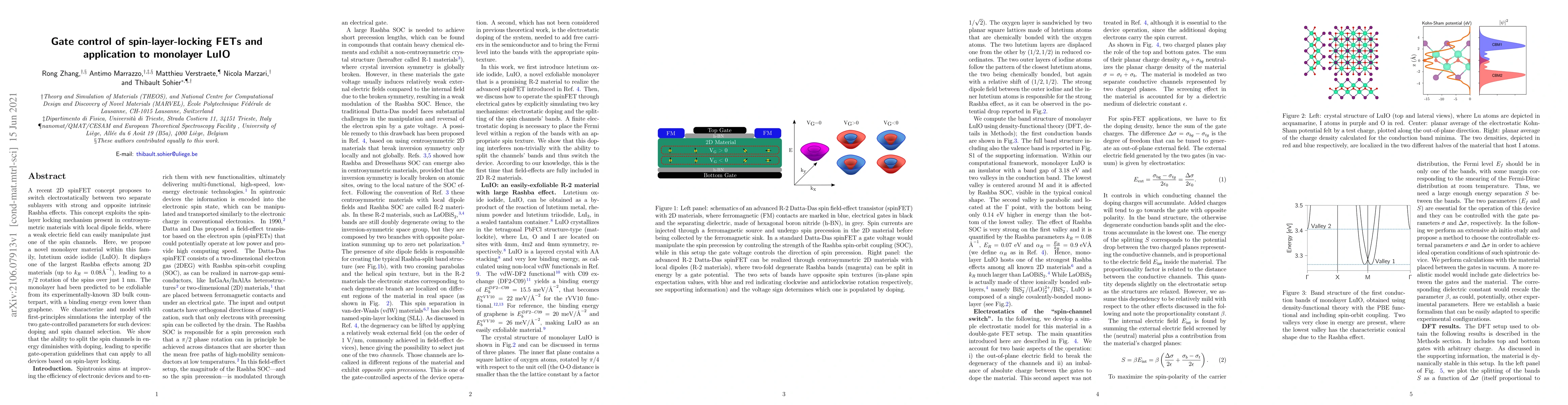 This paper proposes a novel 2D spinFET concept utilizing lutetium oxide iodide (LuIO) with strong Rashba effects, enabling gate-controlled spin-layer locking. First-principles simulations reveal the impact of doping on spin channel manipulation, providing guidelines for optimal device operation.