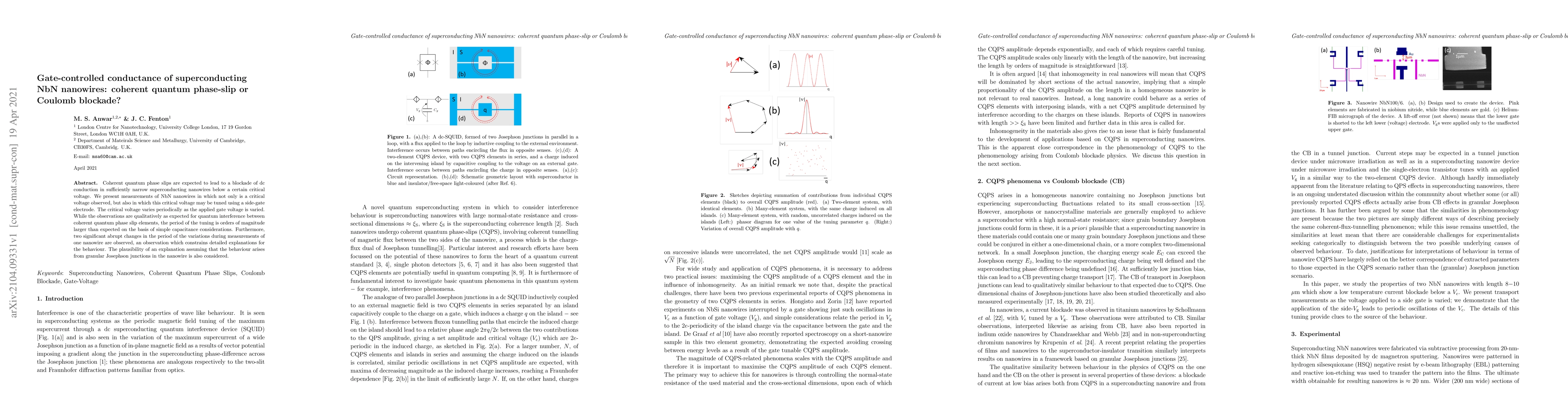 Coherent quantum phase slips are expected to lead to a blockade of dc conduction in sufficiently narrow superconducting nanowires below a certain critical voltage. We present measurements of NbN nanowires in which not only is a critical voltage observed, but also in which this critical voltage may be tuned using a side-gate electrode. The critical voltage varies periodically as the applied gate voltage is varied. While the observations are qualitatively as expected for quantum interference between coherent quantum phase slip elements, the period of the tuning is orders of magnitude larger than expected on the basis of simple capacitance considerations. Furthermore, two significant abrupt changes in the period of the variations during measurements of one nanowire are observed, an observation which constrains detailed explanations for the behaviour. The plausibility of an explanation assuming that the behaviour arises from granular Josephson junctions in the nanowire is also considered.