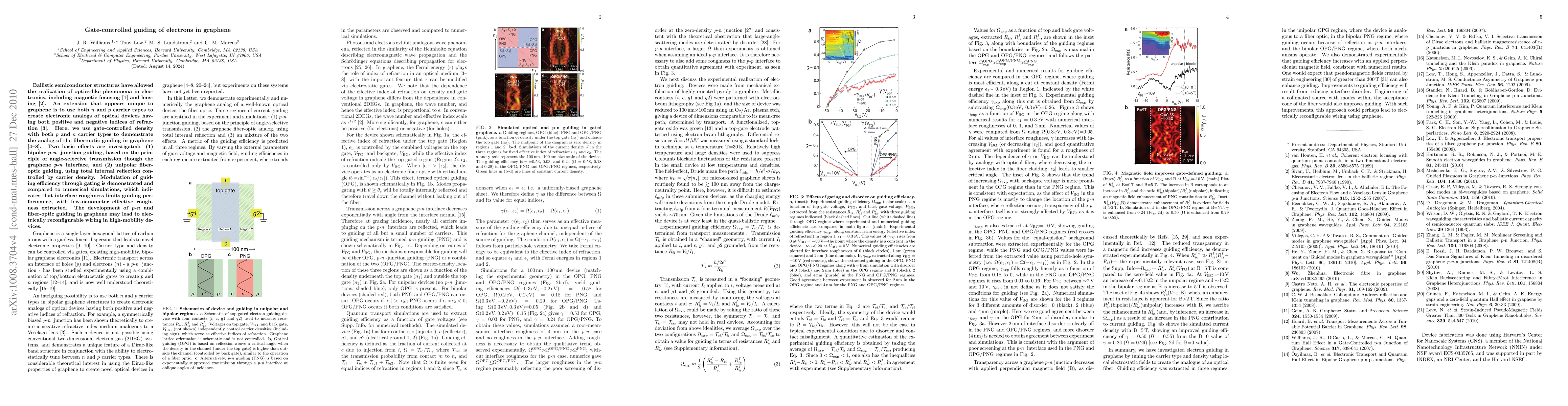 This paper demonstrates gate-controlled electron guiding in graphene using both p and n carriers, achieving electronic analogs of optical devices through bipolar junction and unipolar fiber-optic guiding. The study highlights the modulation of guiding efficiency via gate control and identifies interface roughness as a limiting factor.