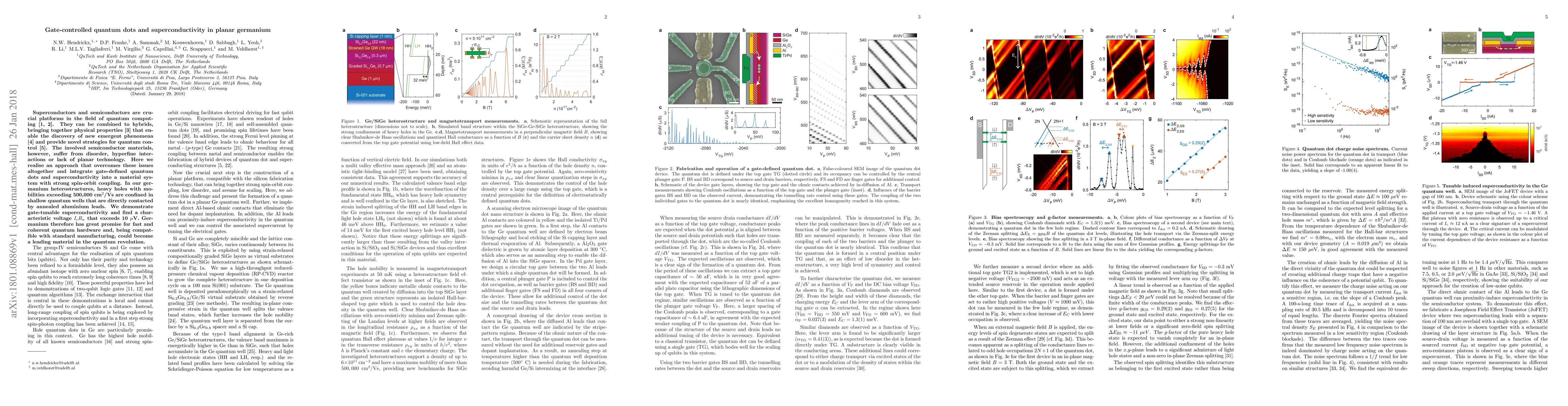 This paper demonstrates the integration of gate-controlled quantum dots and superconductivity in planar germanium, overcoming challenges of semiconductor disorder and hyperfine interactions. The germanium heterostructures show gate-tunable superconductivity and promise for fast, coherent quantum computing hardware.