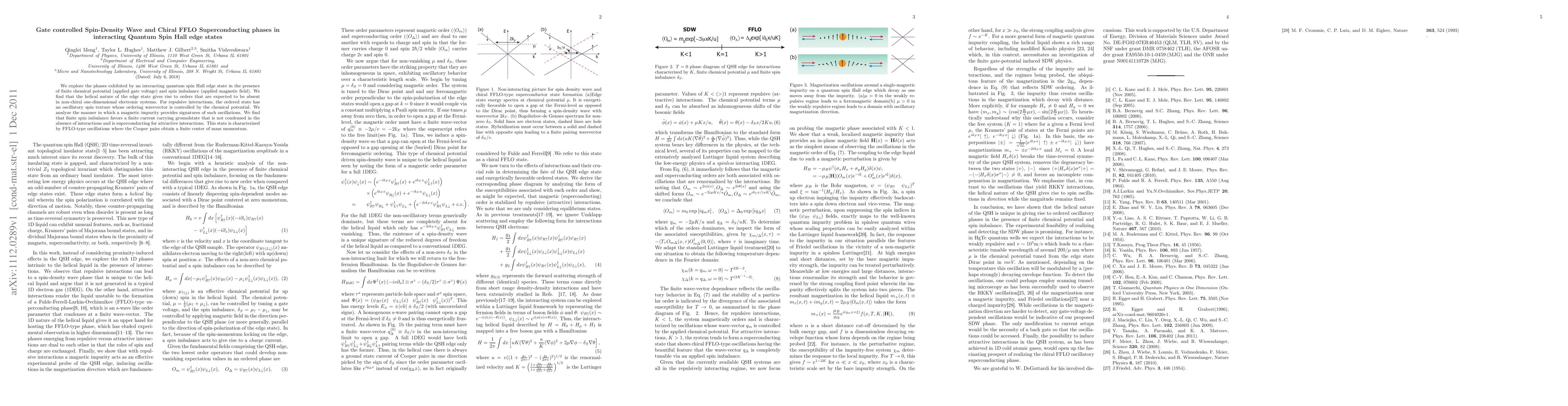 Summary: This paper investigates the quantum spin Hall edge state under finite chemical potential and spin imbalance, revealing novel spin-density wave and chiral FFLO superconducting phases due to its helical nature, with spin texture and superconducting oscillations controlled by the chemical potential and spin imbalance.