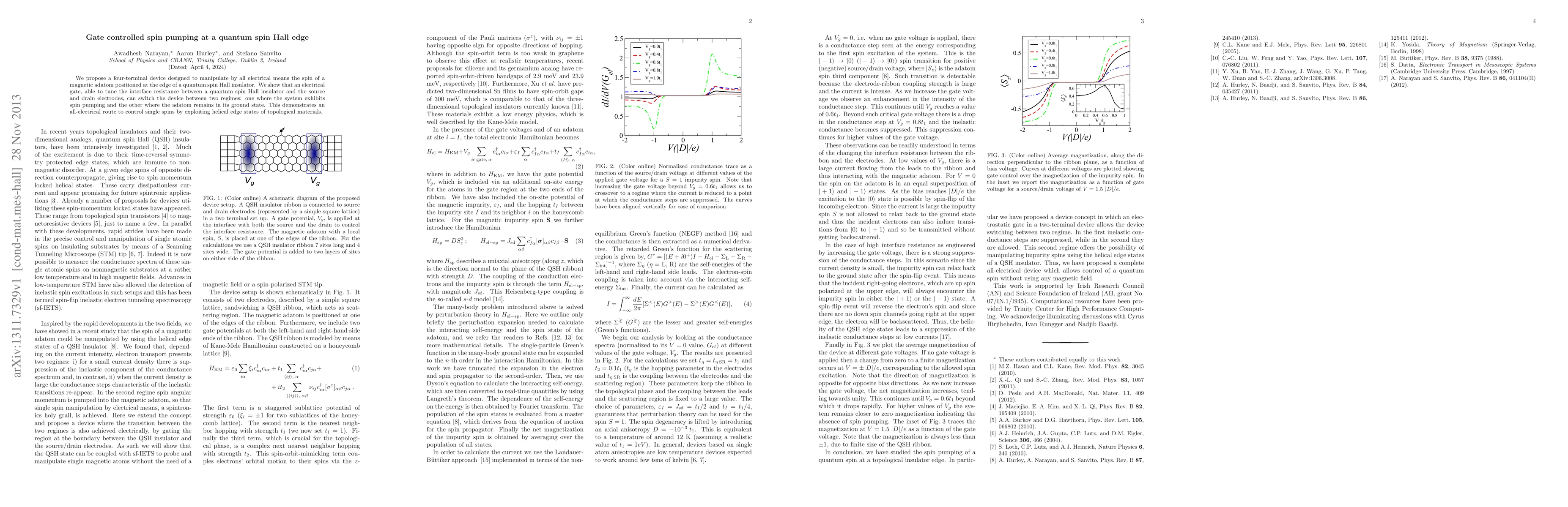 This research proposes a four-terminal device for electrically controlling the spin of a magnetic adatom at a quantum spin Hall edge. By tuning the interface resistance with a gate, the device can switch between a spin pumping regime and a ground state, showcasing an all-electrical method to manipulate single spins using topological material edge states.
