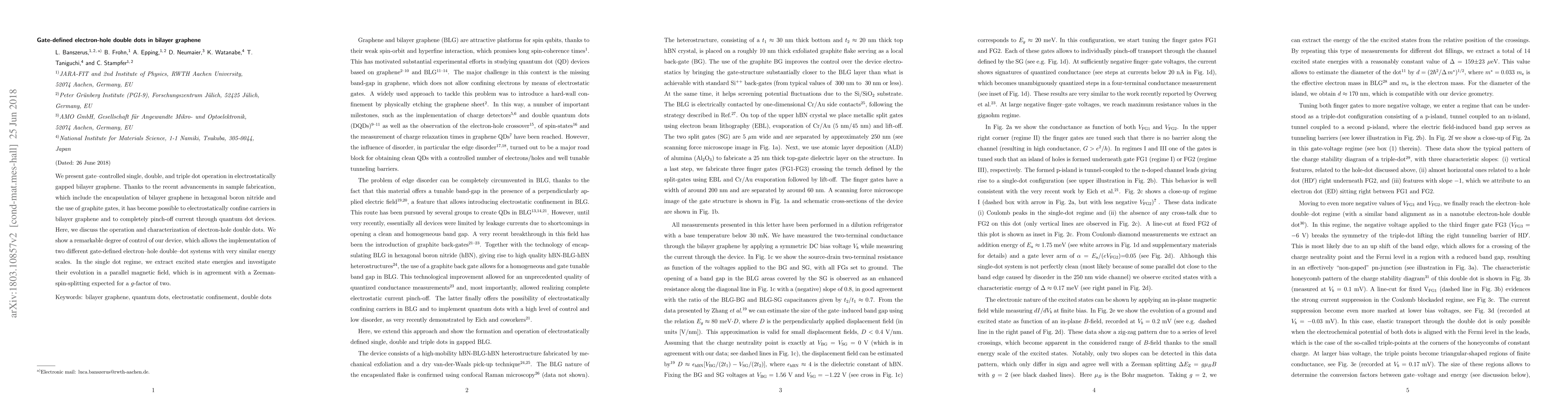 This paper details the creation and control of electron-hole double dots in bilayer graphene, utilizing advanced fabrication techniques. The study demonstrates precise gate-defined quantum dot operations and investigates the Zeeman-spin-splitting in the single dot regime, confirming a g-factor of two.