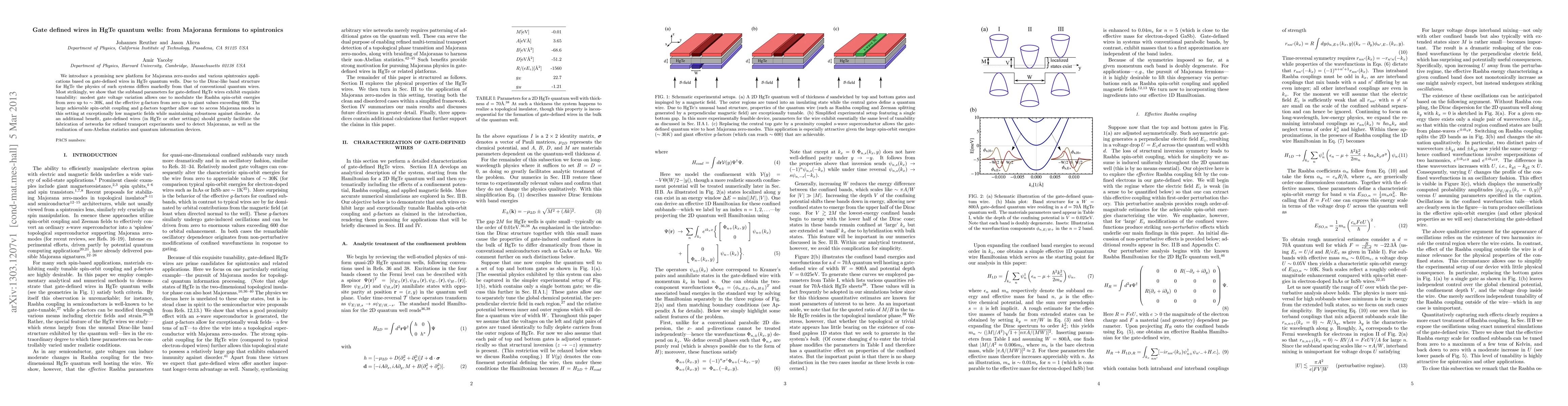 This paper explores gate-defined wires in HgTe quantum wells as a novel platform for Majorana zero-modes and spintronics, highlighting tunable subband parameters that enable significant spin-orbit coupling and g-factors, facilitating the detection of Majoranas and quantum information applications.