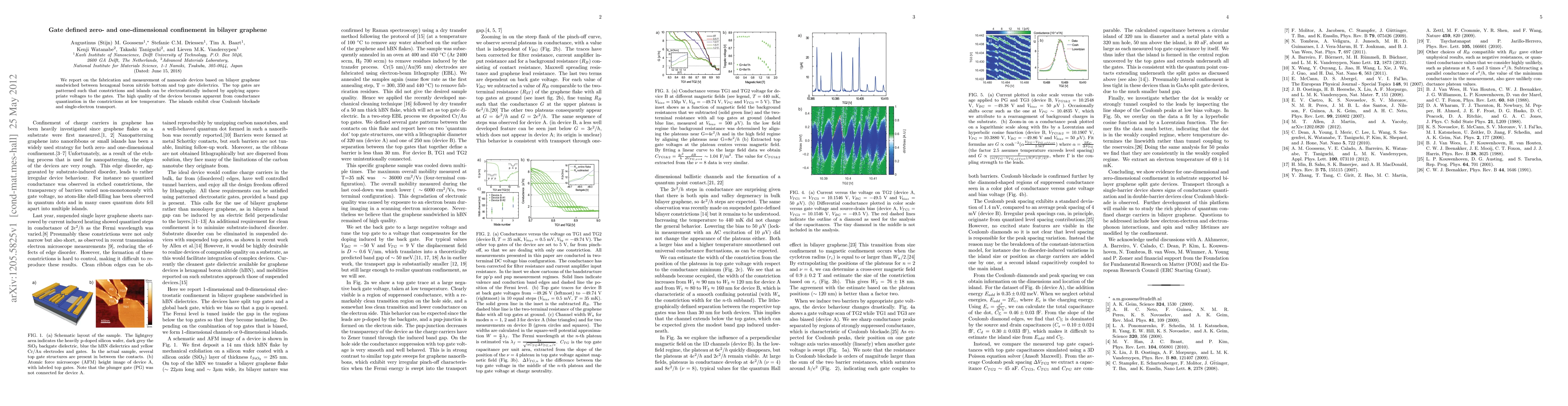 This paper details the fabrication of nanoscale bilayer graphene devices with hexagonal boron nitride gate dielectrics, demonstrating conductance quantization and clear Coulomb blockade, showcasing zero- and one-dimensional confinement effects.