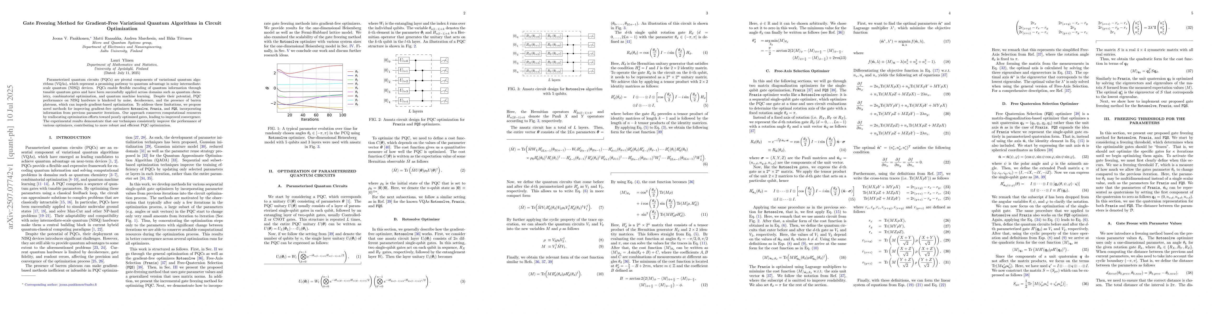 Parameterized quantum circuits (PQCs) are pivotal components of variational quantum algorithms (VQAs), which represent a promising pathway to quantum advantage in noisy intermediate-scale quantum (NISQ) devices. PQCs enable flexible encoding of quantum information through tunable quantum gates and have been successfully applied across domains such as quantum chemistry, combinatorial optimization, and quantum machine learning. Despite their potential, PQC performance on NISQ hardware is hindered by noise, decoherence, and the presence of barren plateaus, which can impede gradient-based optimization. To address these limitations, we propose novel methods for improving gradient-free optimizers Rotosolve, Fraxis, and FQS, incorporating information from previous parameter iterations. Our approach conserves computational resources by reallocating optimization efforts toward poorly optimized gates, leading to improved convergence. The experimental results demonstrate that our techniques consistently improve the performance of various optimizers, contributing to more robust and efficient PQC optimization.