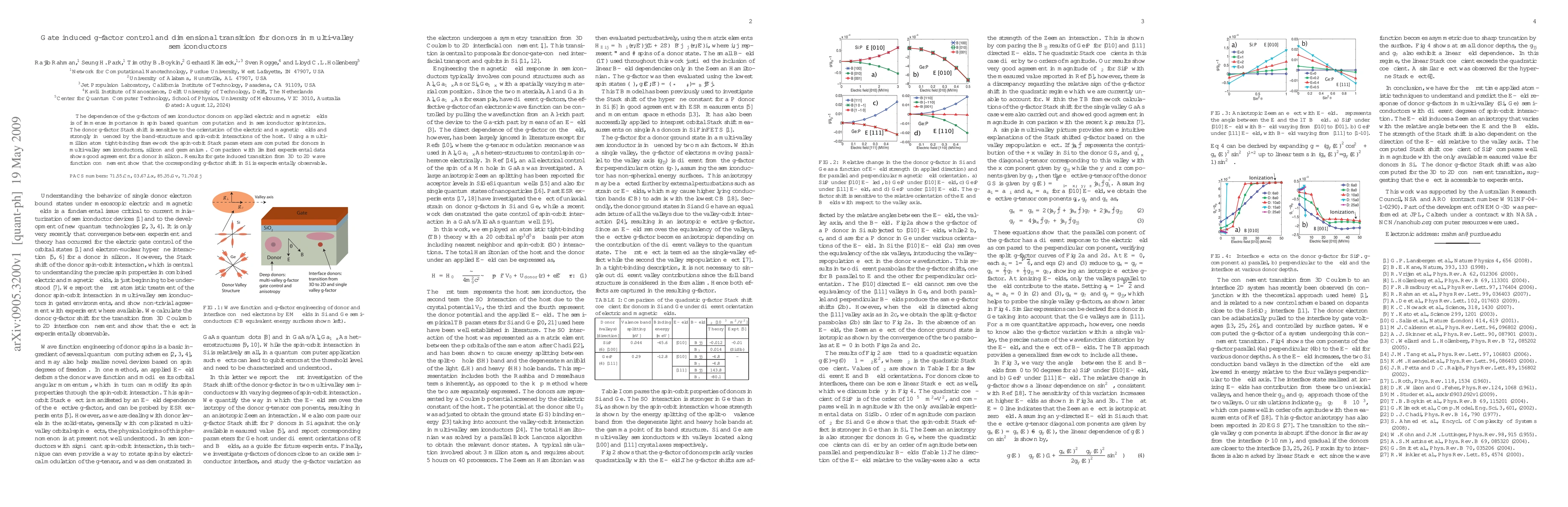 This paper investigates the control of donor g-factors in multi-valley semiconductors like silicon and germanium under electric and magnetic fields, crucial for spin-based quantum computing. It uses a tight-binding framework to compute spin-orbit Stark parameters and demonstrates gate-induced dimensional transitions from 3D to 2D, showing experimentally observable g-factor shifts.