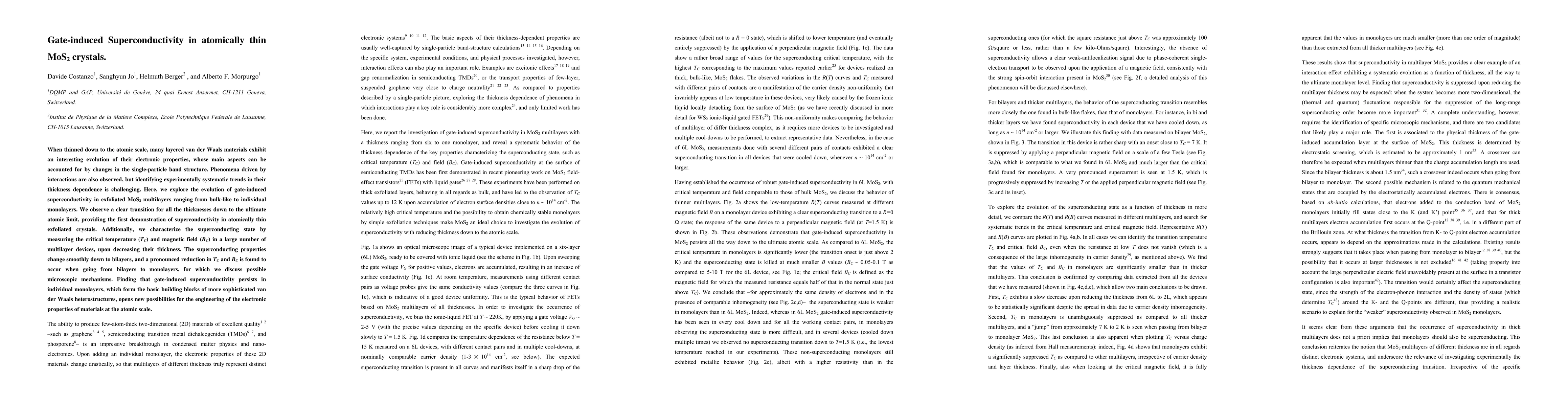 This paper explores the emergence of gate-induced superconductivity in atomically thin MoS2 crystals, demonstrating a transition to superconductivity down to individual monolayers. The study reveals a reduction in critical temperature and magnetic field strength as the thickness decreases, suggesting new avenues for manipulating electronic properties in atomic-scale materials.