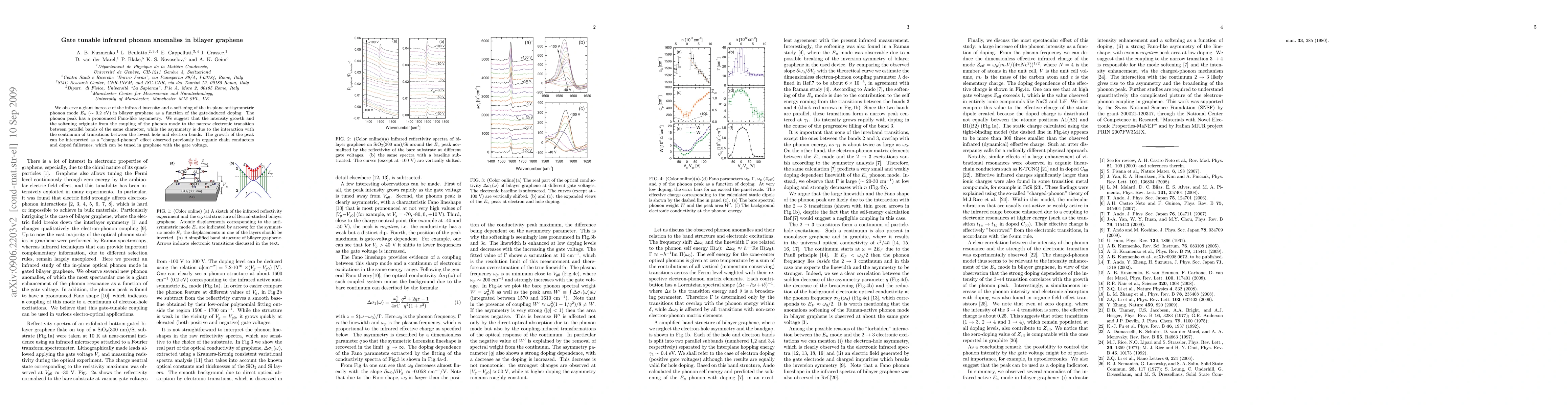 Title: Gate tunable charged-phonon effect in bilayer graphene Summary: The study observes a significant increase in infrared intensity and softening of an in-plane phonon mode in bilayer graphene due to gate-induced doping, suggesting the effect is driven by coupling with electronic transitions and tunable via gate voltage.