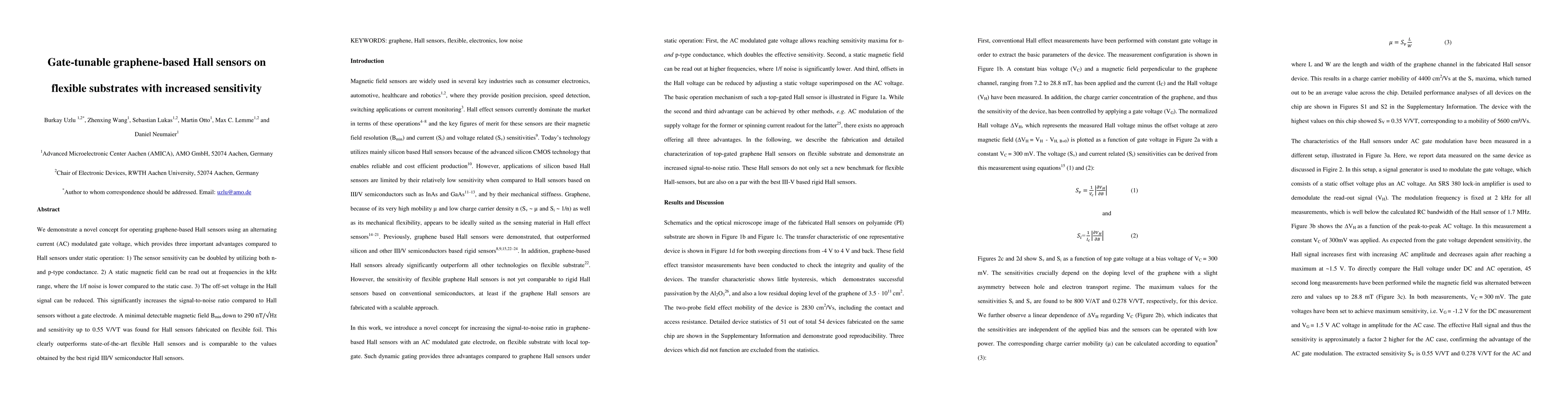 This paper presents a novel graphene-based Hall sensor with tunable sensitivity using AC modulated gate voltage, achieving doubled sensitivity, lower 1/f noise, and reduced offset voltage compared to static sensors, demonstrating superior performance in flexible substrates.