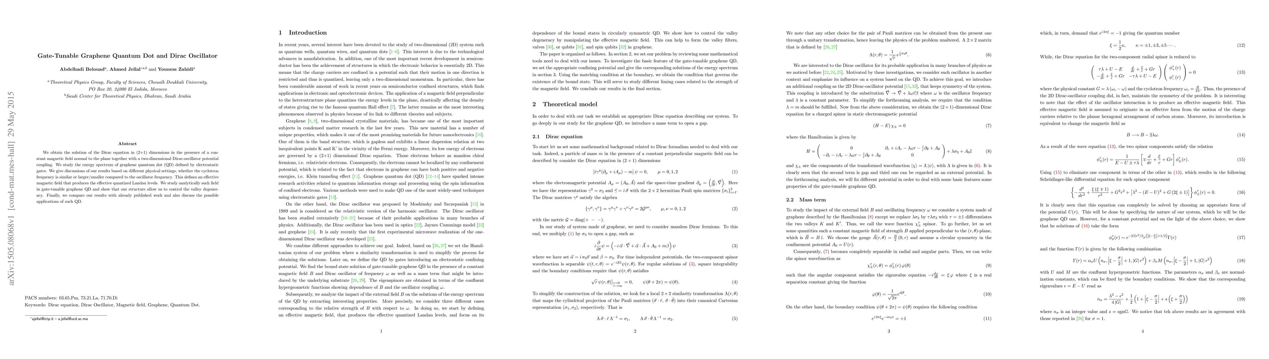 This paper analytically investigates the energy spectrum of a gate-tunable graphene quantum dot under a magnetic field and a Dirac-oscillator potential, demonstrating control over valley degeneracy and comparing results with existing studies. Potential applications of such tunable quantum dots are also discussed.