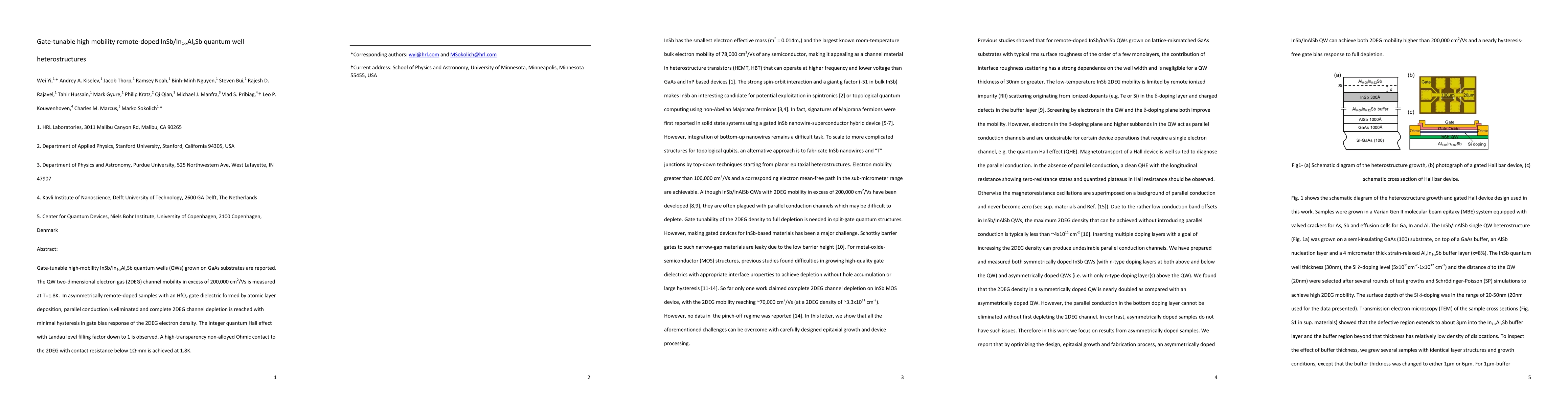 This paper reports on gate-tunable, high-mobility InSb/In_{1-x}Al_{x}Sb quantum wells with 2DEG channel mobility exceeding 200,000 cm^{2}/Vs at 1.8K, achieved using HfO_{2} gate dielectrics and demonstrating the integer quantum Hall effect.