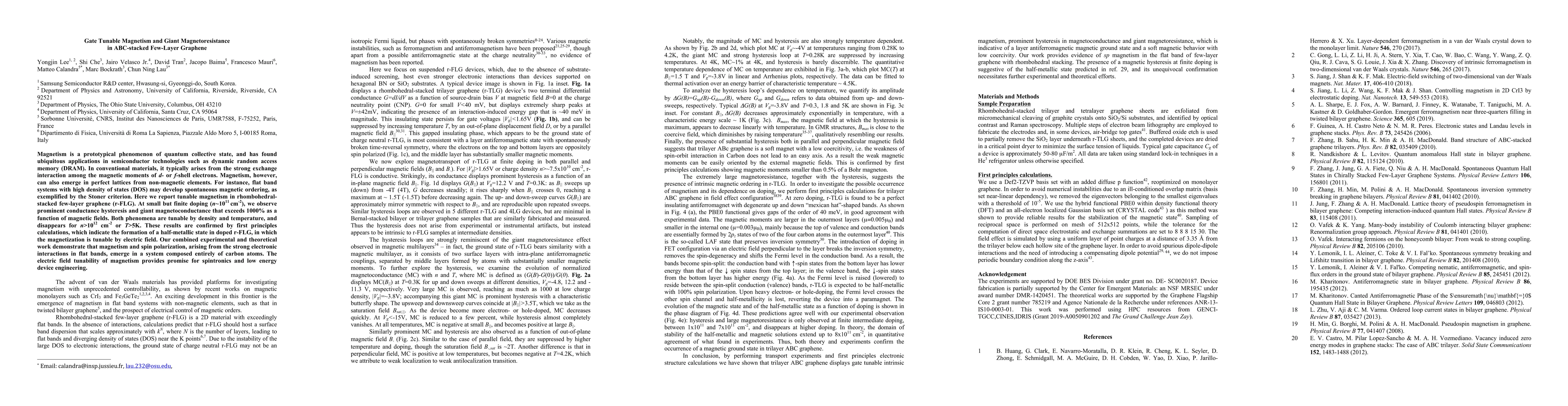This paper reports tunable magnetism and giant magnetoconductance in rhombohedral-stacked few-layer graphene, demonstrating that magnetism can emerge in non-magnetic elements through strong electronic interactions. The observed phenomena are tunable by doping density and temperature, with potential applications in spintronics.