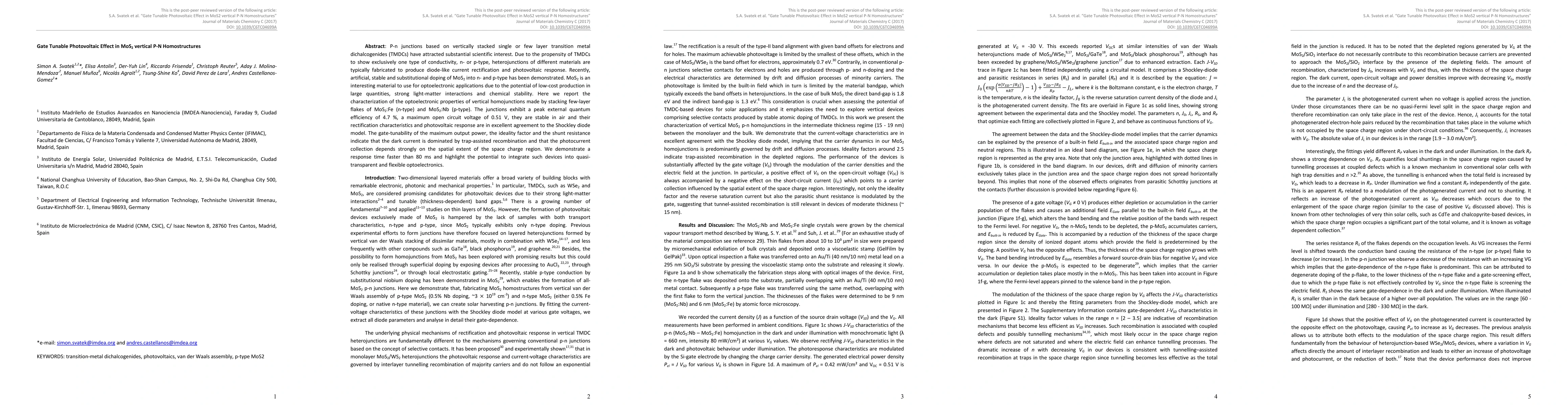 This paper investigates the optoelectronic properties of vertical P-N homojunctions made from Fe-doped n-type and Nb-doped p-type MoS2 layers, demonstrating a peak external quantum efficiency of 4.7% and gate-tunable photovoltaic response, highlighting potential for flexible optoelectronic applications.