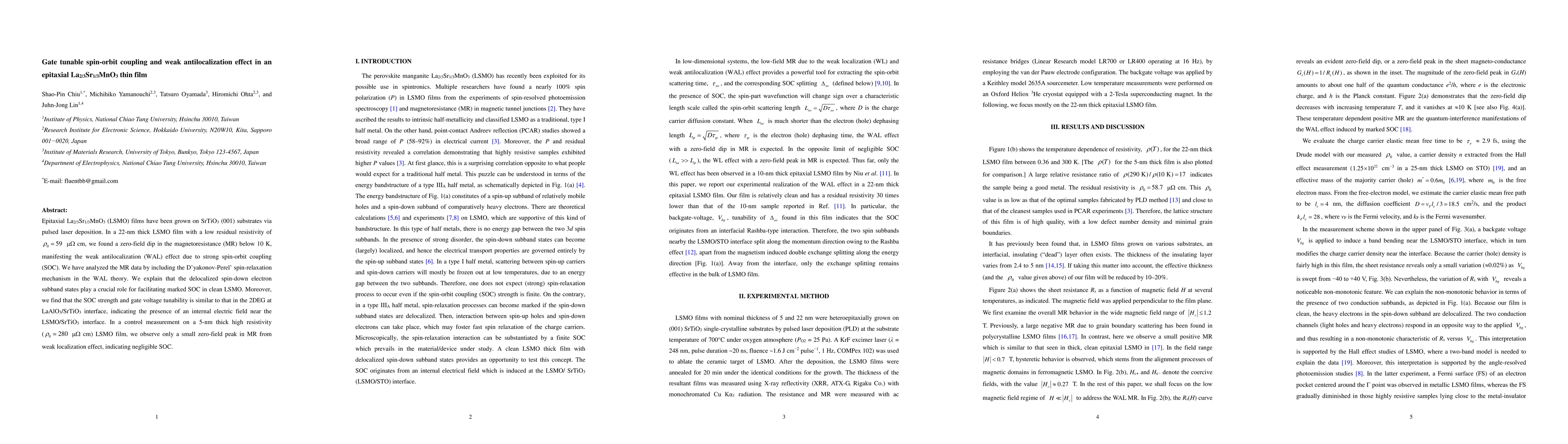 Researchers grew a thin film of La$_{2/3}$Sr$_{1/3}$MnO$_3$ with strong spin-orbit coupling and weak antilocalization effect, which is similar to the 2D electron gas at the LaAlO$_3$/SrTiO$_3$ interface.