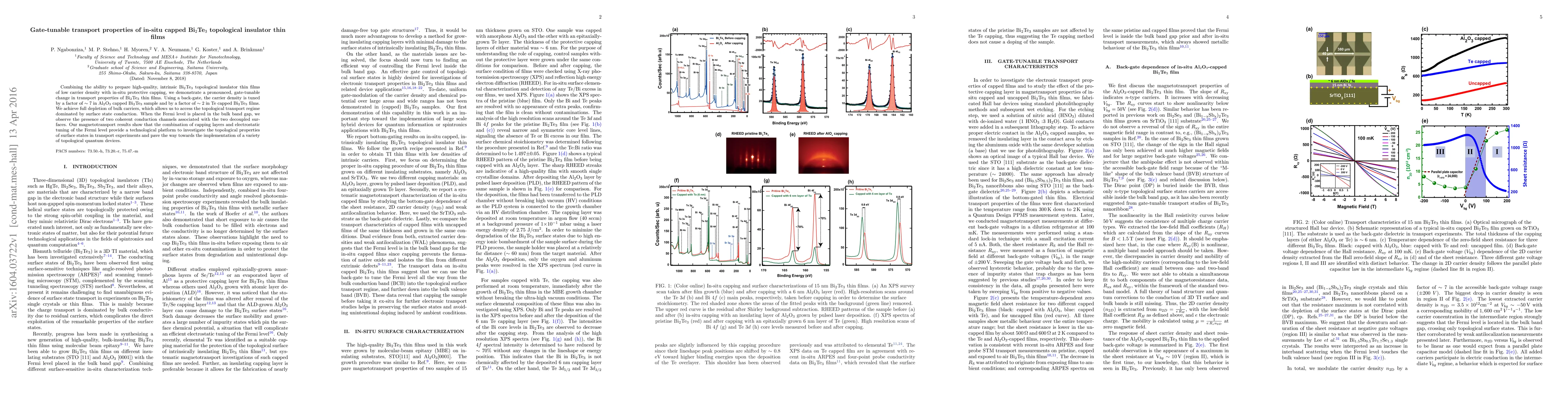 This research investigates gate-tunable transport properties in Bi$_2$Te$_3$ topological insulator thin films, showing significant changes in carrier density under a back-gate, achieving full depletion and revealing topological surface state conduction. The study highlights the potential for technological applications in topological quantum devices.