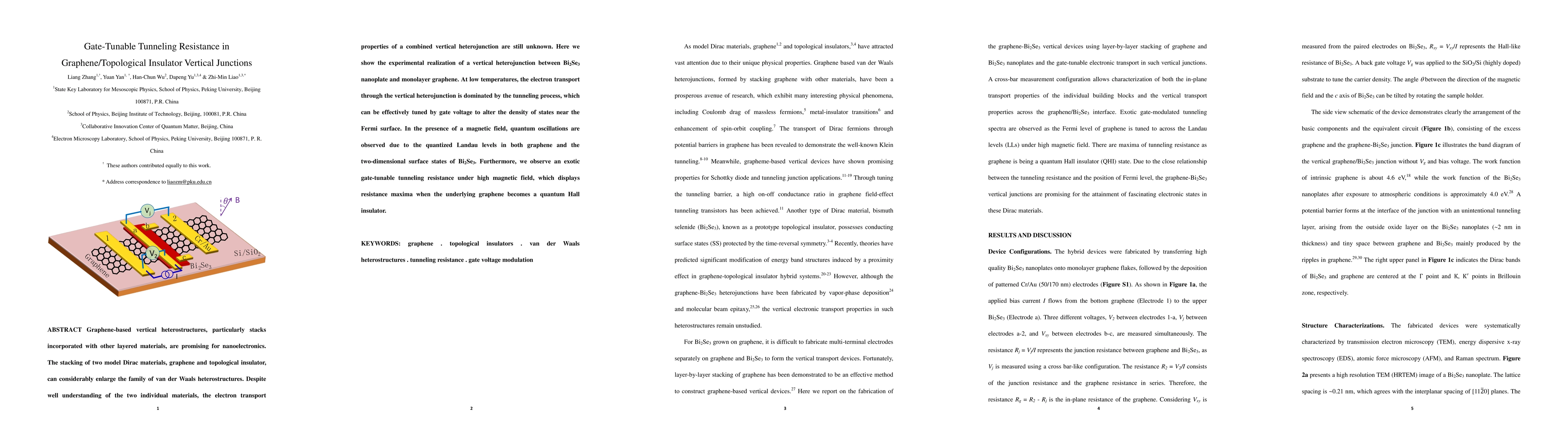 This study experimentally demonstrates gate-tunable tunneling resistance in graphene/topological insulator vertical junctions, revealing electron transport dominated by tunneling at low temperatures. The tunneling resistance can be effectively tuned by gate voltage, with quantum oscillations observed under magnetic fields due to quantized Landau levels in both materials.