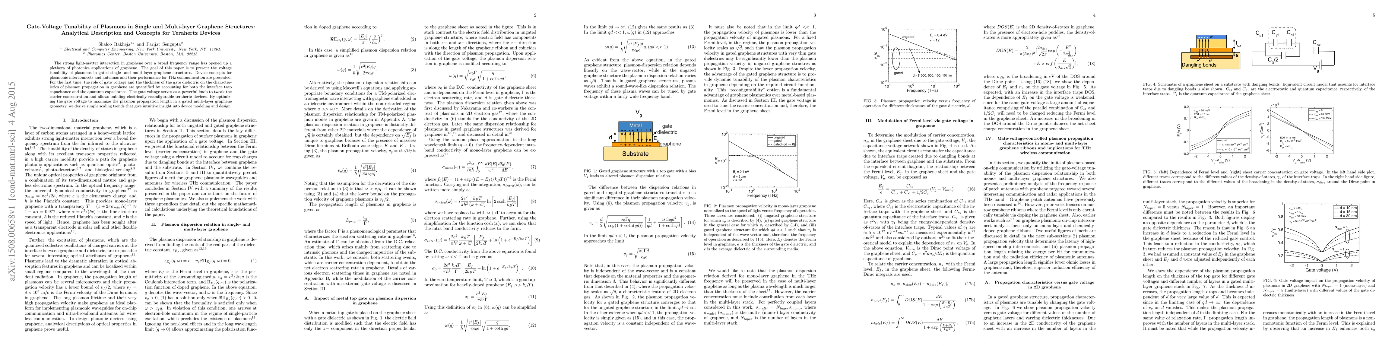 This paper investigates the gate-voltage tunability of plasmons in single and multi-layer graphene structures, quantifying the effects of gate voltage and dielectric thickness on plasmon propagation. It proposes device concepts for terahertz communication, highlighting the potential for electrically reconfigurable terahertz devices through optimized gate voltage settings.