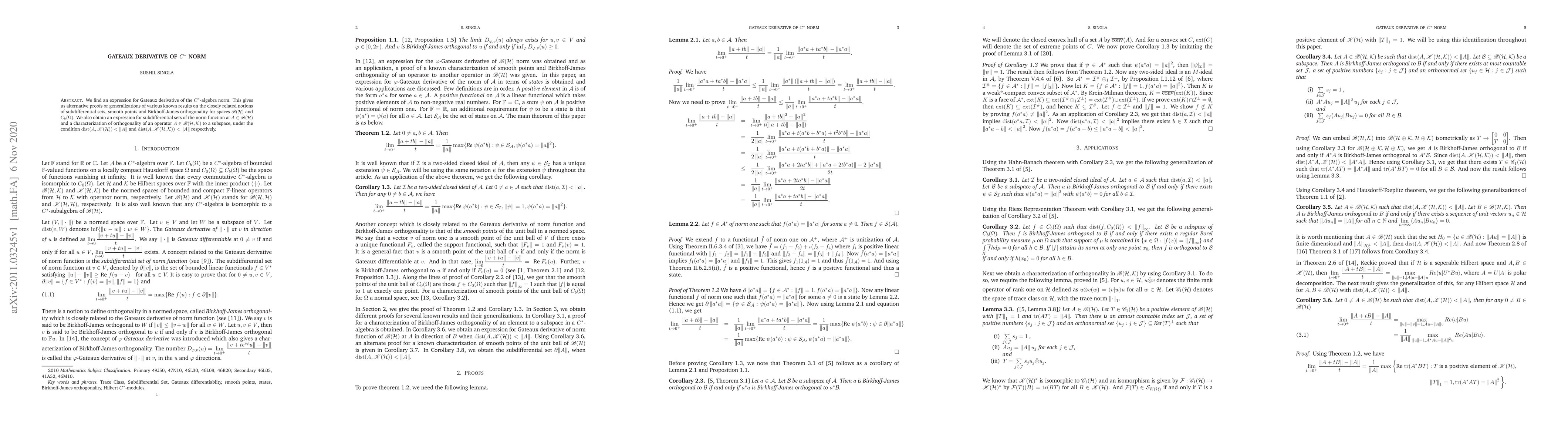 The research paper introduces an expression for the Gateaux derivative of the $C^*$-algebra norm, providing alternative proofs or generalizations for known results on subdifferential sets, smooth points, and Birkhoff-James orthogonality in operator spaces.