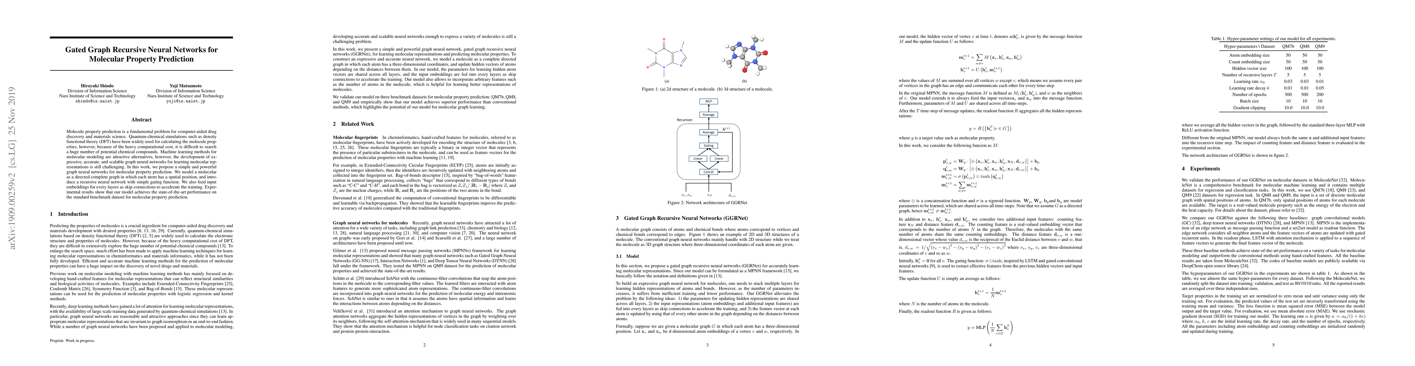 This paper proposes a Gated Graph Recursive Neural Network (GGRNN) for predicting molecular properties, addressing the computational challenges of quantum-chemical simulations. The model uses a directed complete graph representation of molecules and recursive neural networks with gating functions, enhanced by skip connections for faster training, achieving state-of-the-art performance on benchmark datasets.