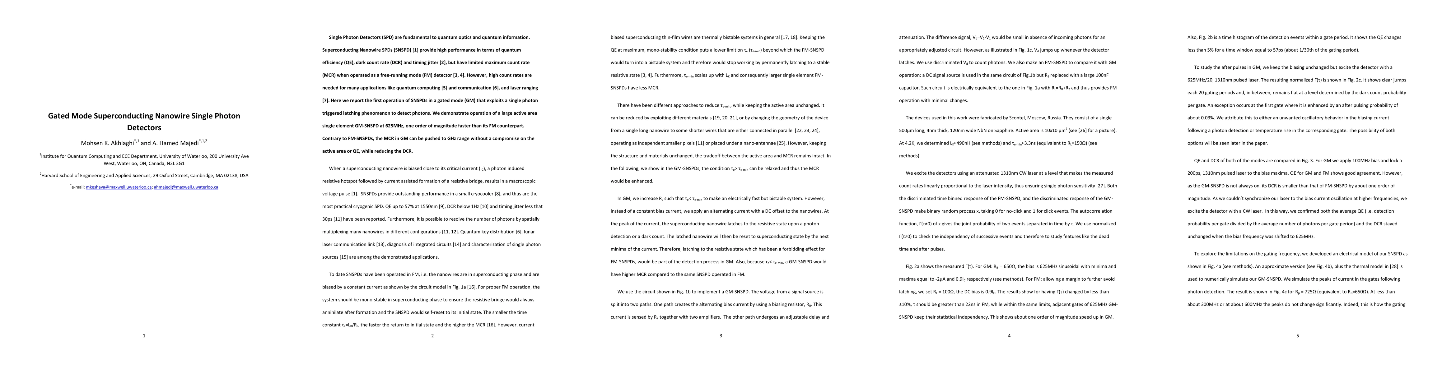This paper introduces gated mode operation for Superconducting Nanowire Single Photon Detectors (SNSPDs) that significantly enhances maximum count rate to GHz levels without compromising quantum efficiency or active area, while also reducing dark count rates compared to free-running mode. This advancement is crucial for applications in quantum computing and communication.